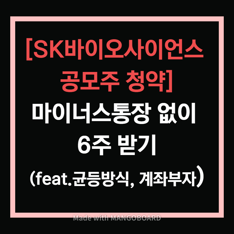 올 해 상반기에 대형 공모주 청약이 줄지어 예정되어있다는데, 첫 삽을 SK바이오사이언스가 뜨나 봅니다. 작년에도 SK바이오팜이나 카카오게임즈, 빅히트 상장 시에 대규모의 자금이 몰렸지만 당시에는 관심이 없었어요. 어차피 금방 환불이 될 테지만 대출을 끌어다 써야하는 게 첫 번째, 제 수준에서 대출을 끌어봤자 2-3주 밖에 안될 것 같다는 생각이 두 번째 이유였습니다. 돈을 많이 넣은 사람이 배정을 받을 수 있는 제도였기 때문에 이미 주식에 돈을 많이 넣은 저는 여유 자금이 없어요ㅋㅋㅋㅋㅋ