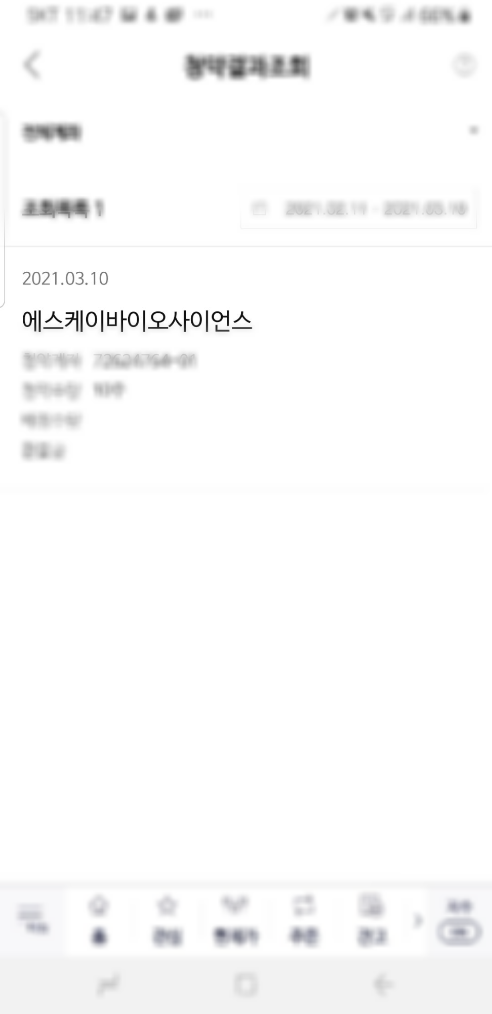 | [SK바이오사이언스 공모주 청약 결과] 공모주생아 8주 배정! feat. 매도시점 (1) | 2021.03.11 |