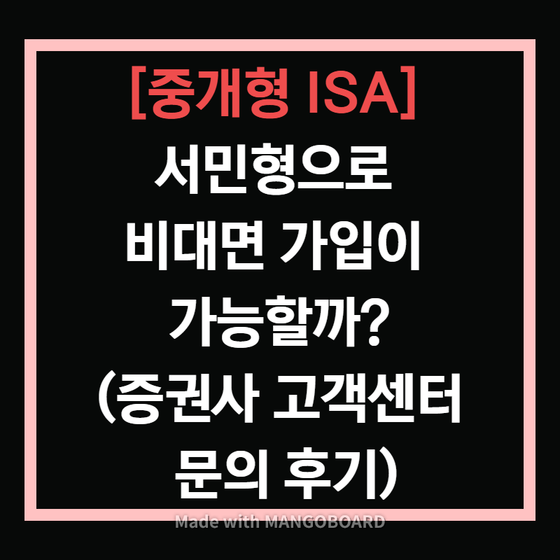 오늘 소개할 내용은 중개형 ISA를 '서민형'으로 '비대면 가입'이 가능할까?에 대한 증권사 고객센터 문의 후기입니다.