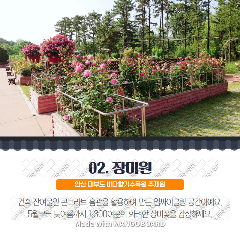 사진을 가장 많이 남겼던 장미원이예요. 아래 사진처럼 콘크리트 흄관을 활용하여 화분을 만든 것 같아요. 제가 제일 좋아하는 분홍색 장미, 오랜만에 본 백장미, 자주 보기 힘든 주황색 장미까지 알록달록한 장미의 향연이었어요.
