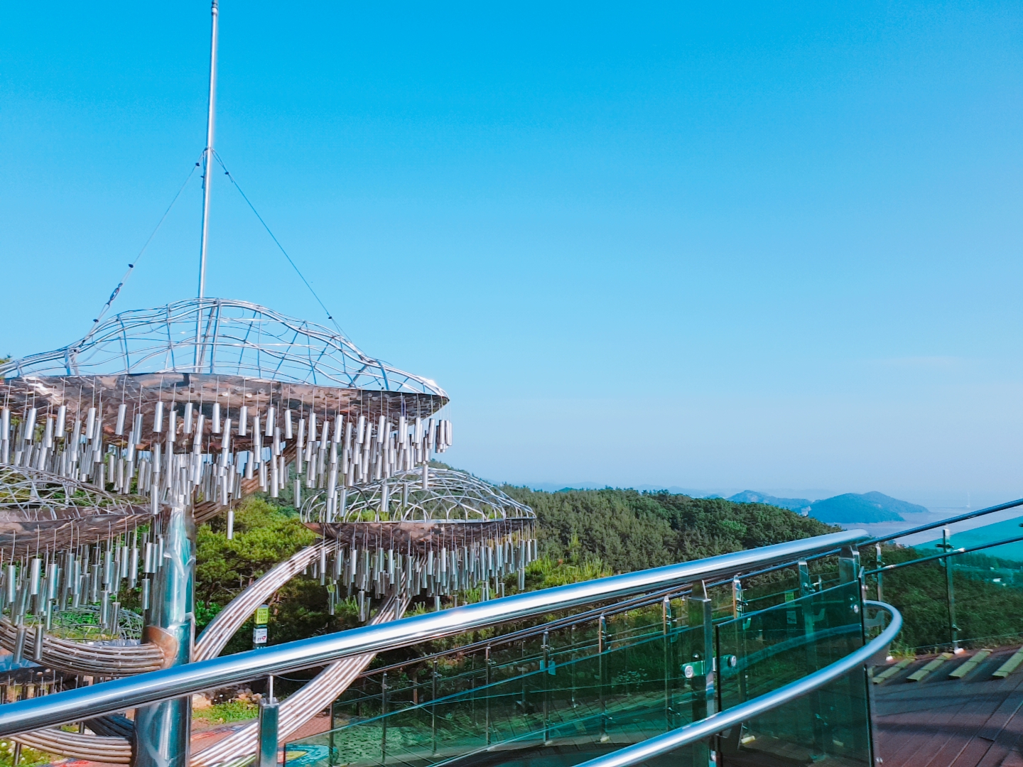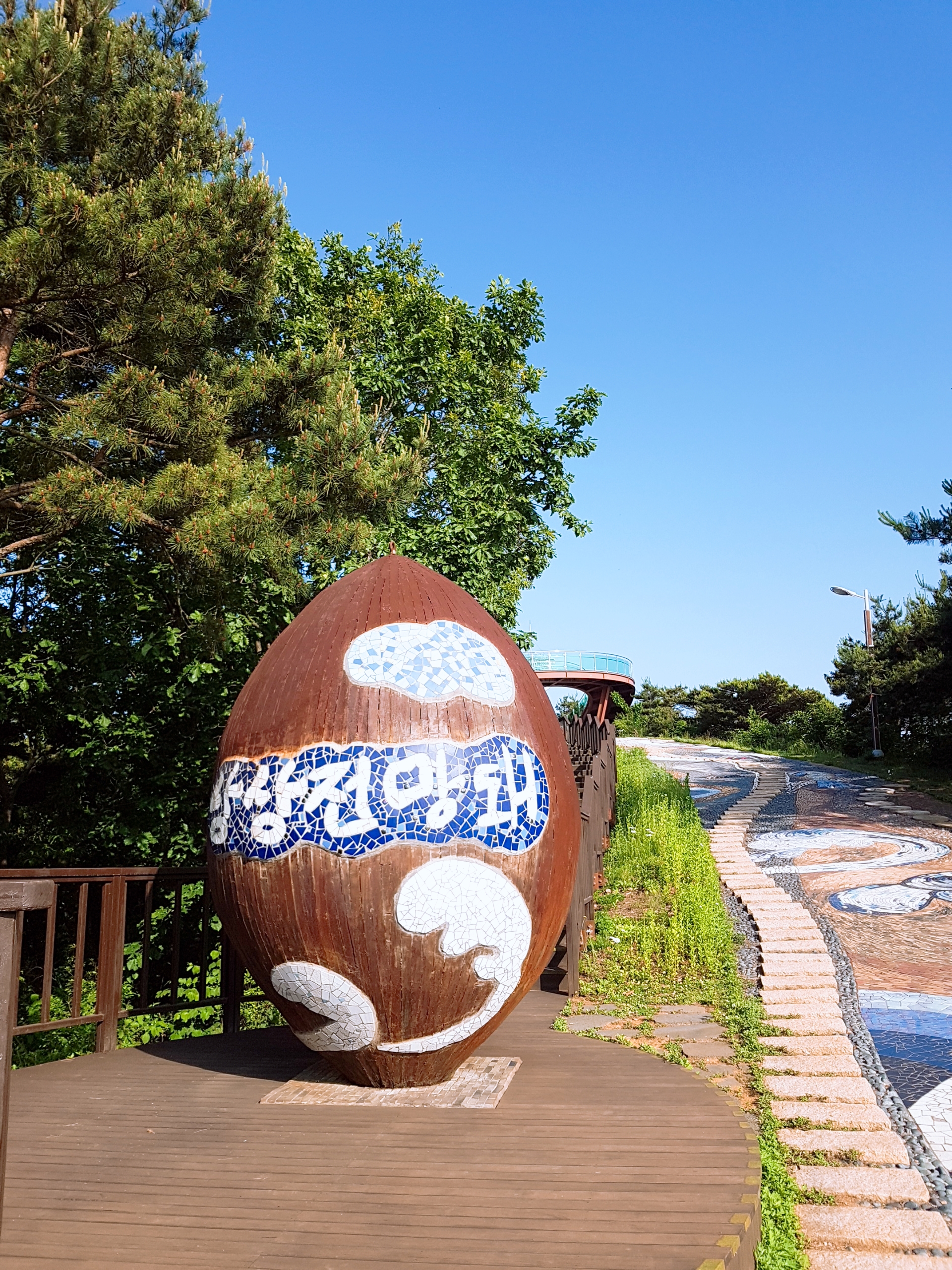 럭비공 같이 생긴 조형물이 전망대 입구를 지키고 있어요. 후면을 보니 조형물을 2012년에 만들었다는 것을 알 수 있었어요. 개원은 2019년 5월이었는데 오랜시간을 걸쳐 준비했던 바다향기수목원임을 느꼈어요.
