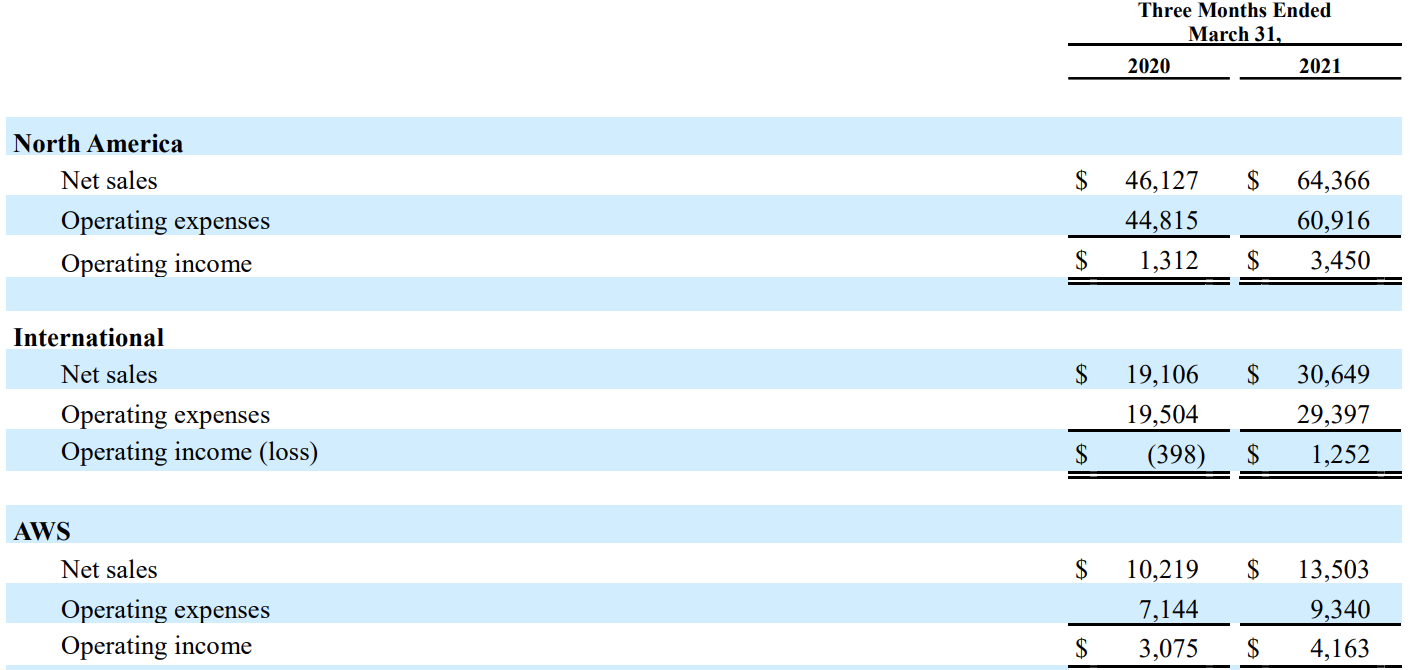 종합적으로 아마존은 지난 2020년 1분기와 비교하여 아래와 같은 결과를 발표하였습니다.