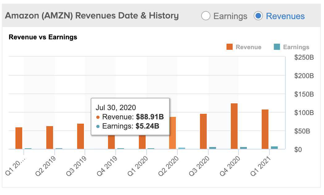 이번 2021년 1분기 실적발표에도 영업이익과 순이익을 보시면 2020년 1분기와 비교하였을 때 두 배는 거뜬히 오른 모습을 확인할 수 있는데요. 영업이익이 88억 달러로, 전년 동분기가 39억 달러인 것에 비교하면 영업 비용을 크게 낮춘 것을 확인할 수 있습니다. 아마존은 매출 대비 영업이익과 순이익을 극대화시킬 가능성이 남아있는 상태고, 그 말은 즉슨 아직 주가가 상승할 수 있다는 걸 의미하기도 합니다.