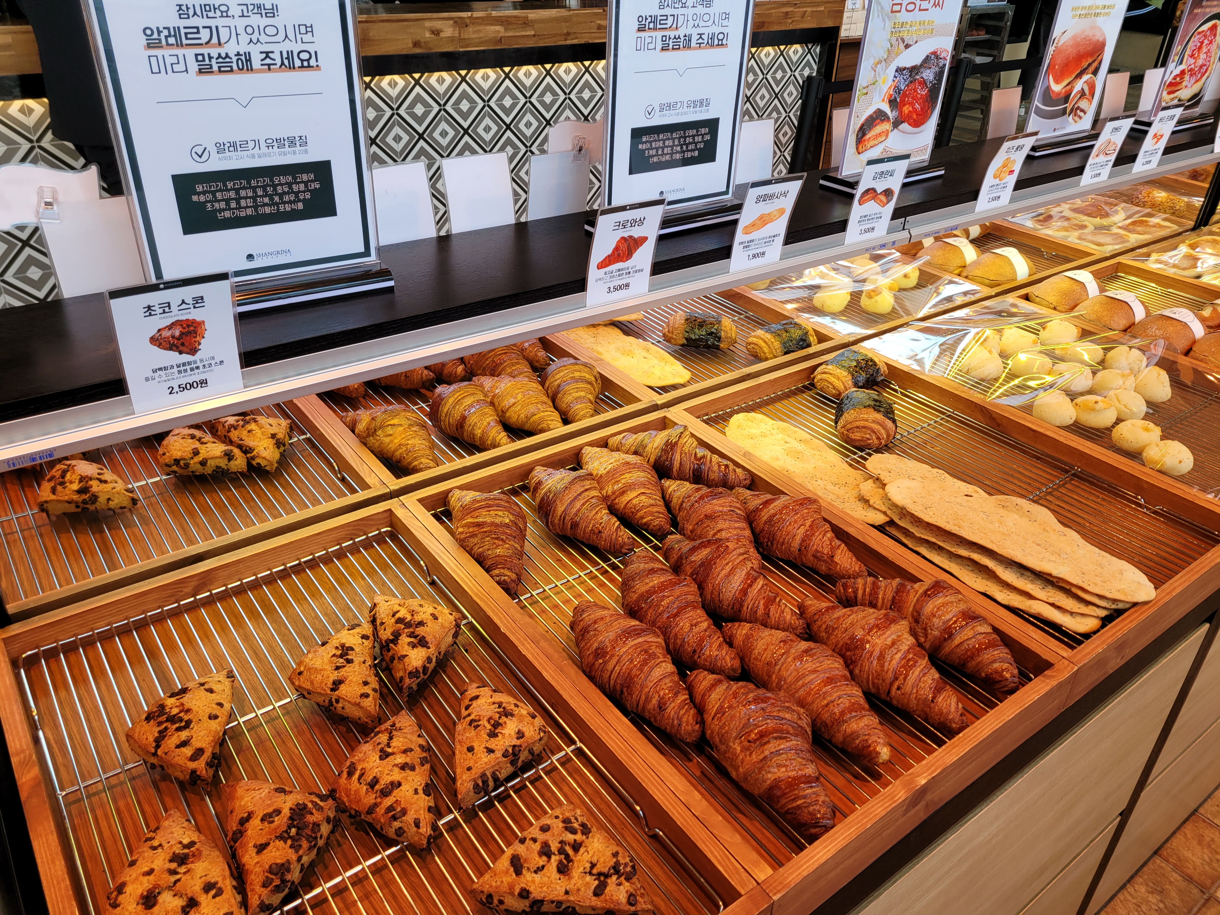 초코스콘(2,500), 크로와상(3,500), 양파바사삭(1,900)