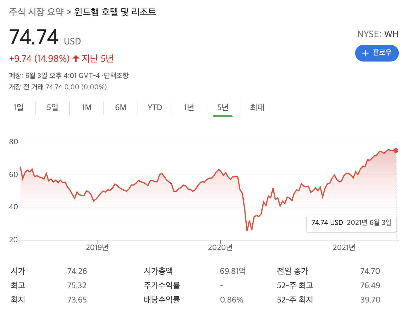 1. Wyndham Hotels & Resorts (WH)- 윈덤 호텔 앤 리조트