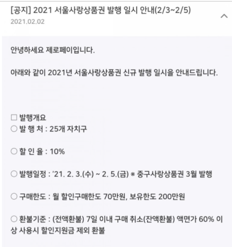 선물하기 기능도 있기 때문에 가족 명의의 계좌로 서울사랑상품권을 구매 후, 한 곳으로 몰아 사용하는 게 편리할 것 같습니다. 유효기간도 2월 기준, 5년이라고 하니 안 살 이유가 없는데 과연 구매 행렬에 참여할 수 있을지! 도전해보겠습니다.