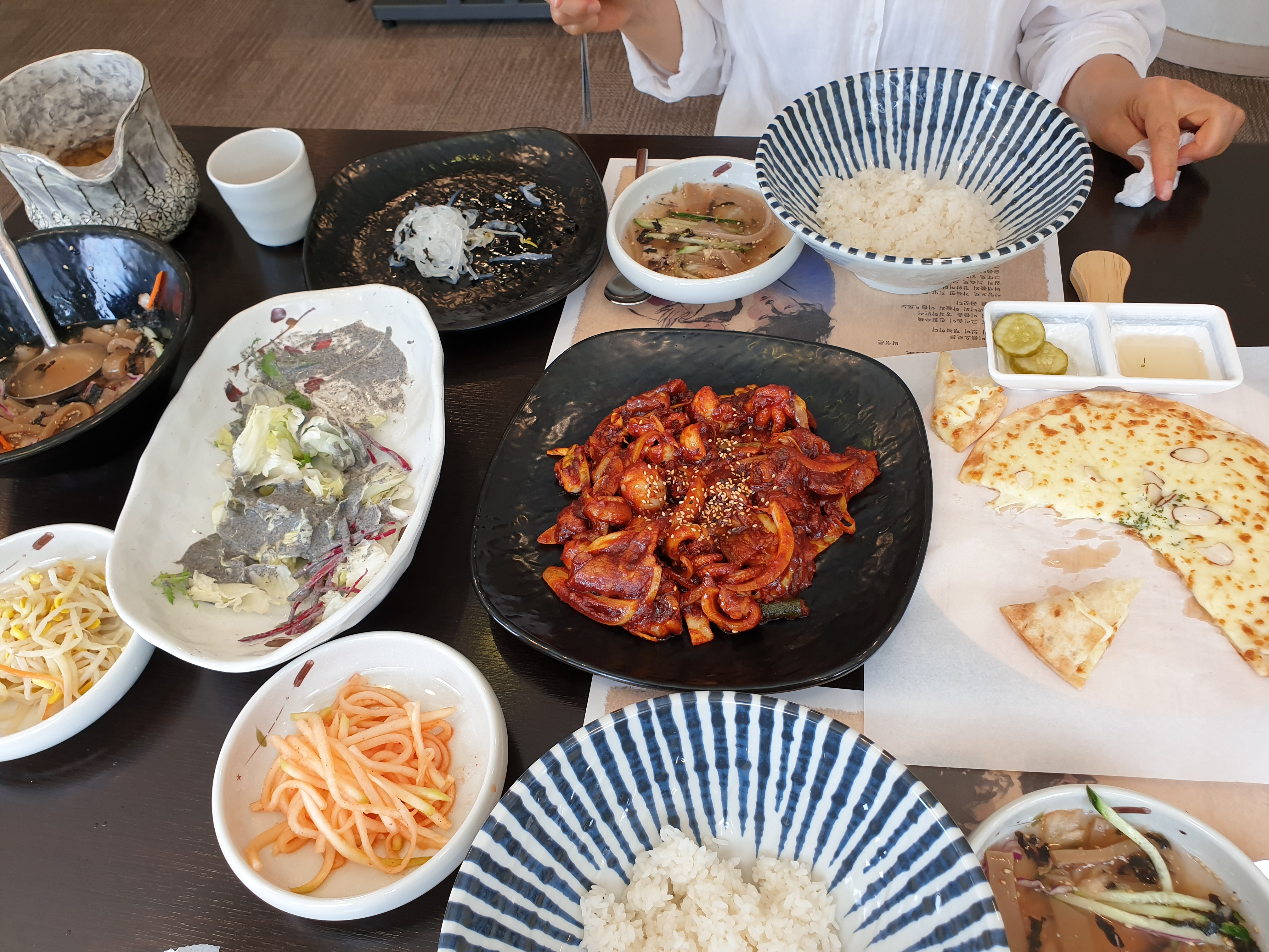 제육쭈꾸미는 사실 너무너무 매웠어요...저번에 직화쭈꾸미도 많이 매웠어서 이번에 덜 맵게 해달라고 말씀드릴까 고민했었는데 안했거든요. 덜 매운 맛이 되는지는 모르겠는데 다음에 갈때는 덜 맵게 해달라고 말씀드리려구요.