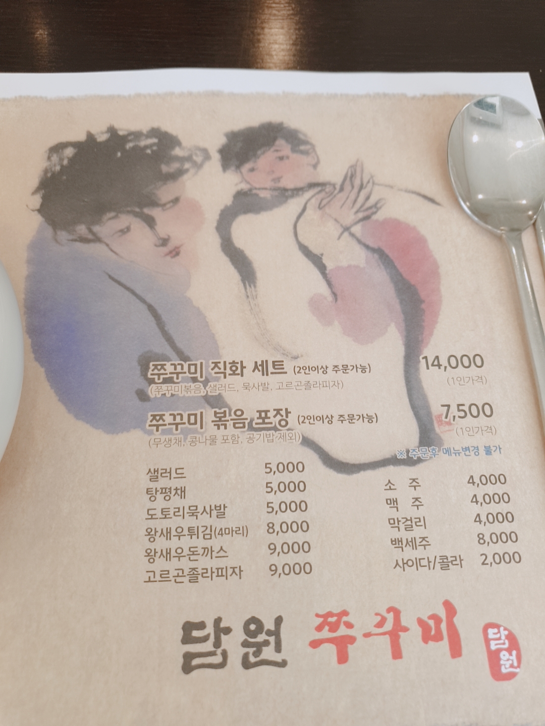 2년 전 쯤에는 이 곳이 담원 한정식 집이었는데 상호명이 담원쭈꾸미로 바뀌었더라구요.