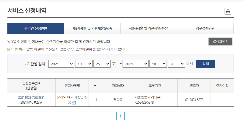 온라인으로 여권 재발급 신청을 완료했습니다.