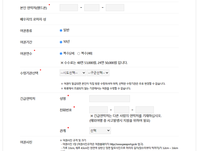 여권면수는 24면과 48면이 있는데 각각 5만원, 53,000원입니다. 면수가 거의 두배인데 3천원 차이 밖에 나지 않으니 48면을 신청했습니다. 사실 24면을 할까 고민했던 이유는 12월 즈음부터 새로 발급된다고 하는 여권 때문입니다. 12월부터는 파란색의 전자 여권으로 발급된다고 하는데요. 24면도 채 사용하지 않고 여권을 변경할 가능성도 있기에...고민했어요.