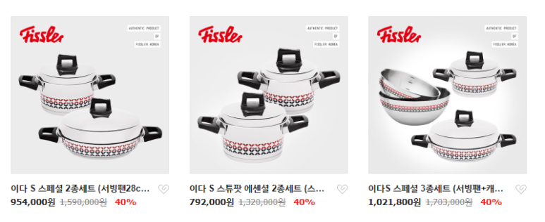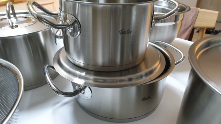 이렇게 휘슬러 특유의 무늬가 있는 냄비는 한국 전용 냄비인데요. 물론 동양인 식사와 요리 방식에 맞춰 생산되는 '독일산' 냄비이긴 하지만 그래도 저는 전세계에서 유통되는 냄비가 좋았다고 생각했어요. 그리고 저런 냄비들은 가격대도 뭔가 한국패치 되서 비싸더라고요. 아마 방문 판매로 인한 수수료가 아닐까 추리해봅니다.