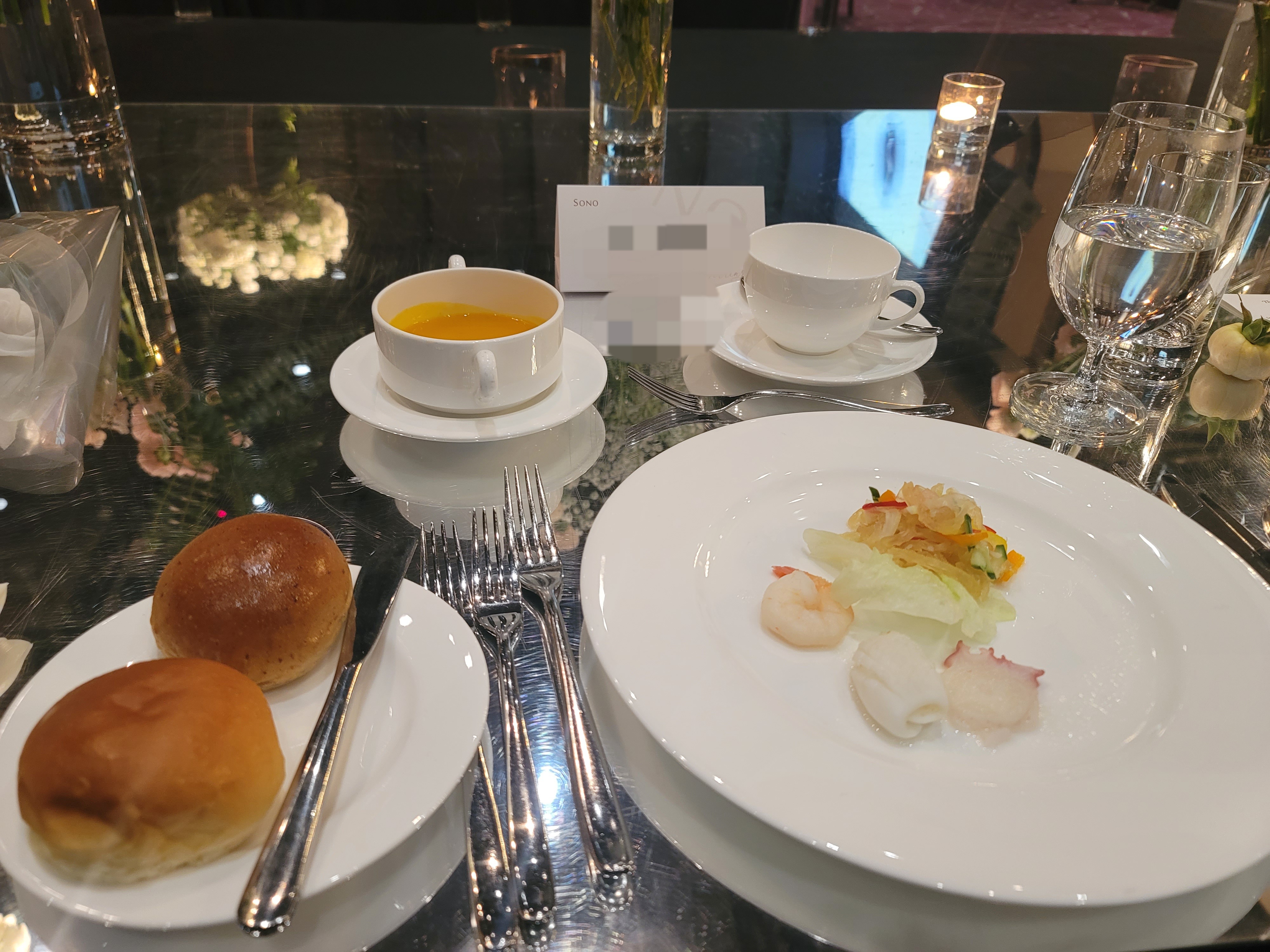 소노캄 고양 웨딩은 동시 예식이라 식사는 코스요리였어요. 1부 마치자마자 식사가 세팅되었는데요. 케이스 바이 케이스지만 1부가 30분 이내로 끝나서 식사를 생각보다 빨리 할 수 있었어요. 특히 친구 예식은 앞 타임 예식이 없어서 직계 가족 원판 사진을 미리 찍은 걸로 알고 있거든요. 1부 마치고는 친지, 친구 사진만 찍어서 만족스러웠어요.