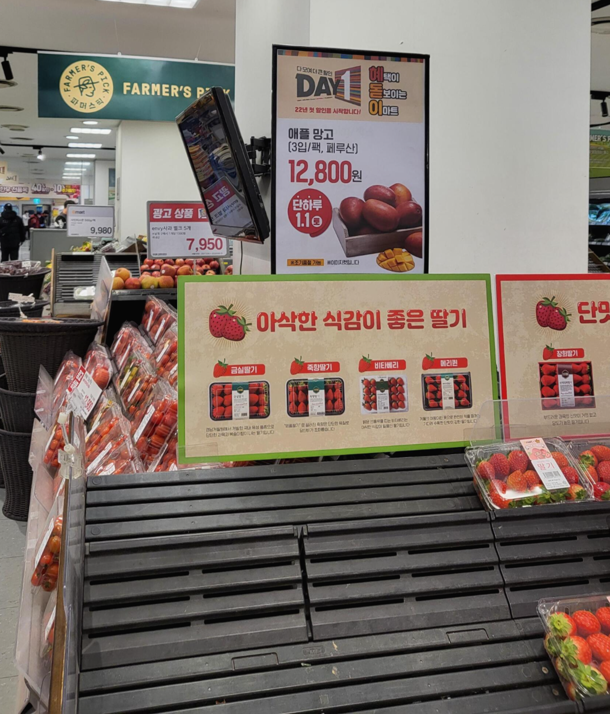 이전 페이지 1 / 12 다음 페이지 emart 다 모여 더 큰 할인 DAY1 샤인머스캣 (1.5kg/박스, 국내산)※행사기간:1/2(일), 단하루 ※입점점포에 한함 ※행사상품에 한함 ※자세한 행사상품은 점내 고지물 참