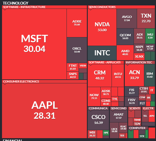 S&P 500 지수 보다는 나스닥 지수가 더 큰 하락폭을 보이는 것으로 보아 기술주 중심의 하락세임을 알 수 있는데요.