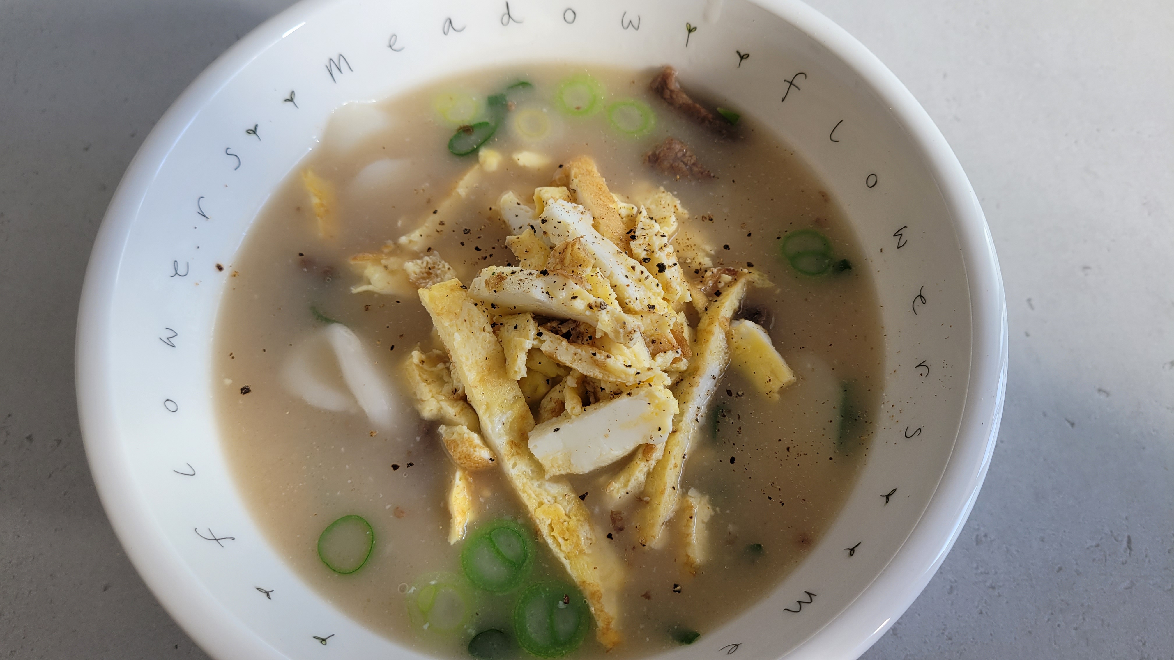 제 인생 첫 떡국을 끓여보았는데요. 이마트에서 국거리용처럼 썰려있는 앞다리살을 구매해보았는데 기름기가 없고 담백한 맛이더군요. 떡국에는 적합했는데 미역국 소고기로는 살짝 아쉬웠습니다....ㅎㅎ