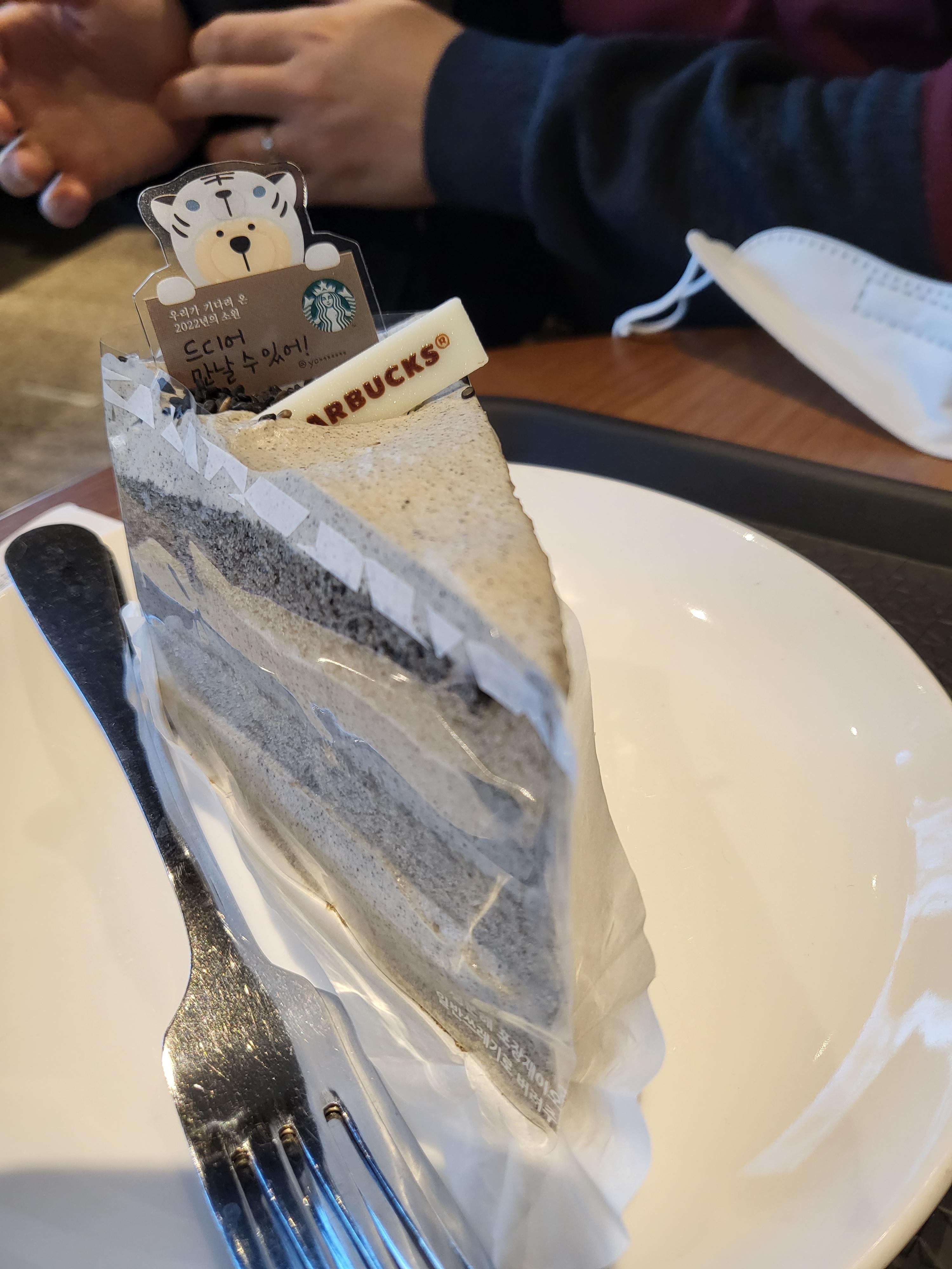 신제품인 흑임자크림케이크를 먹었는데 크림과 쉬폰이 부드럽고 달지 않아서 부담 없더군요. 최근 스타벅스 가격인상과 리유저블 컵 때문에 말이 많은데 한국 스타벅스는 신세계가 주인이라고 하니 한국 패치된 느낌이 드는 건 저 뿐인가요..?ㅎㅎㅎ