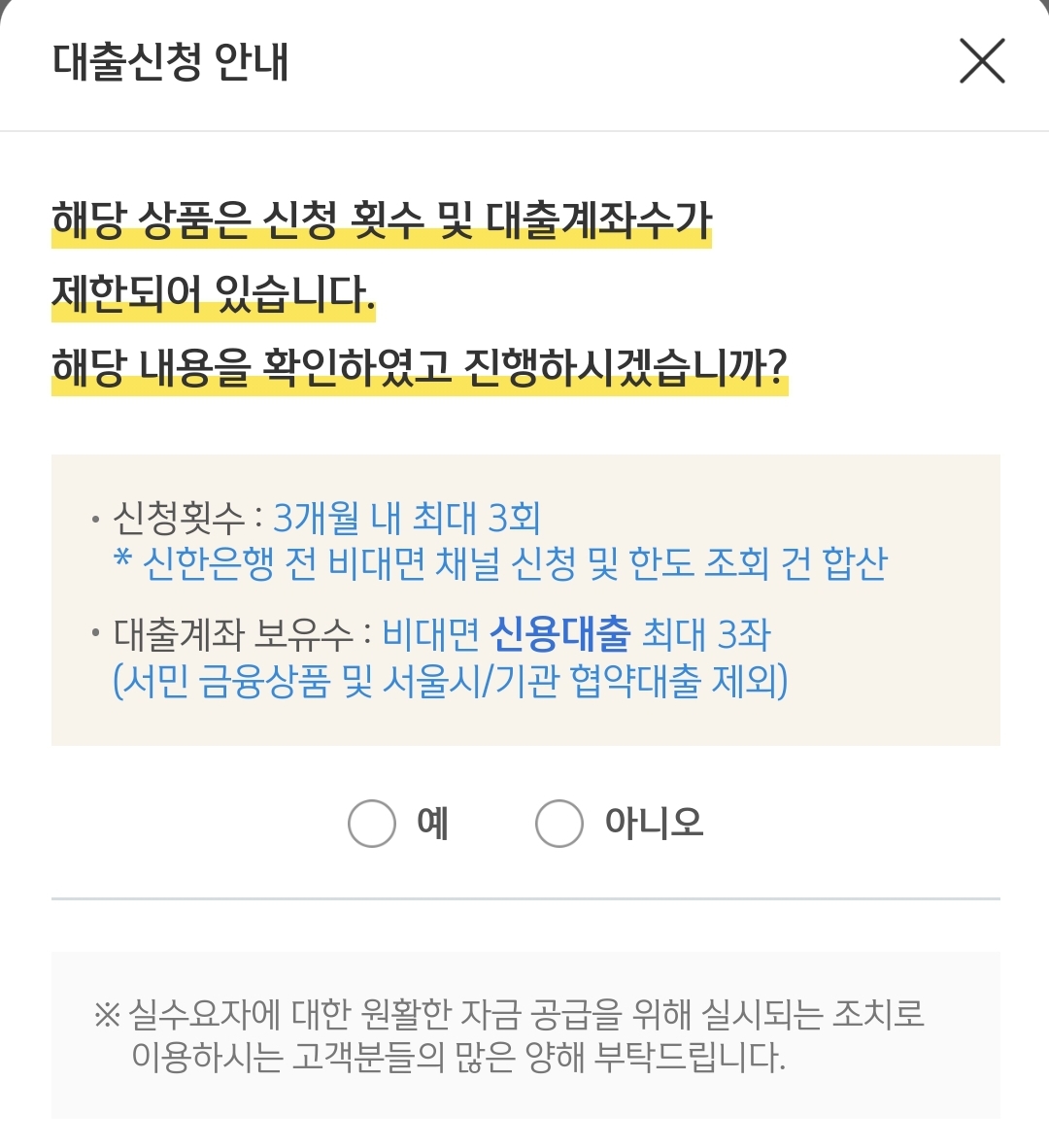 신한은행 : 3회 이상 대출 한도 조회를 하면 대출이 안됨