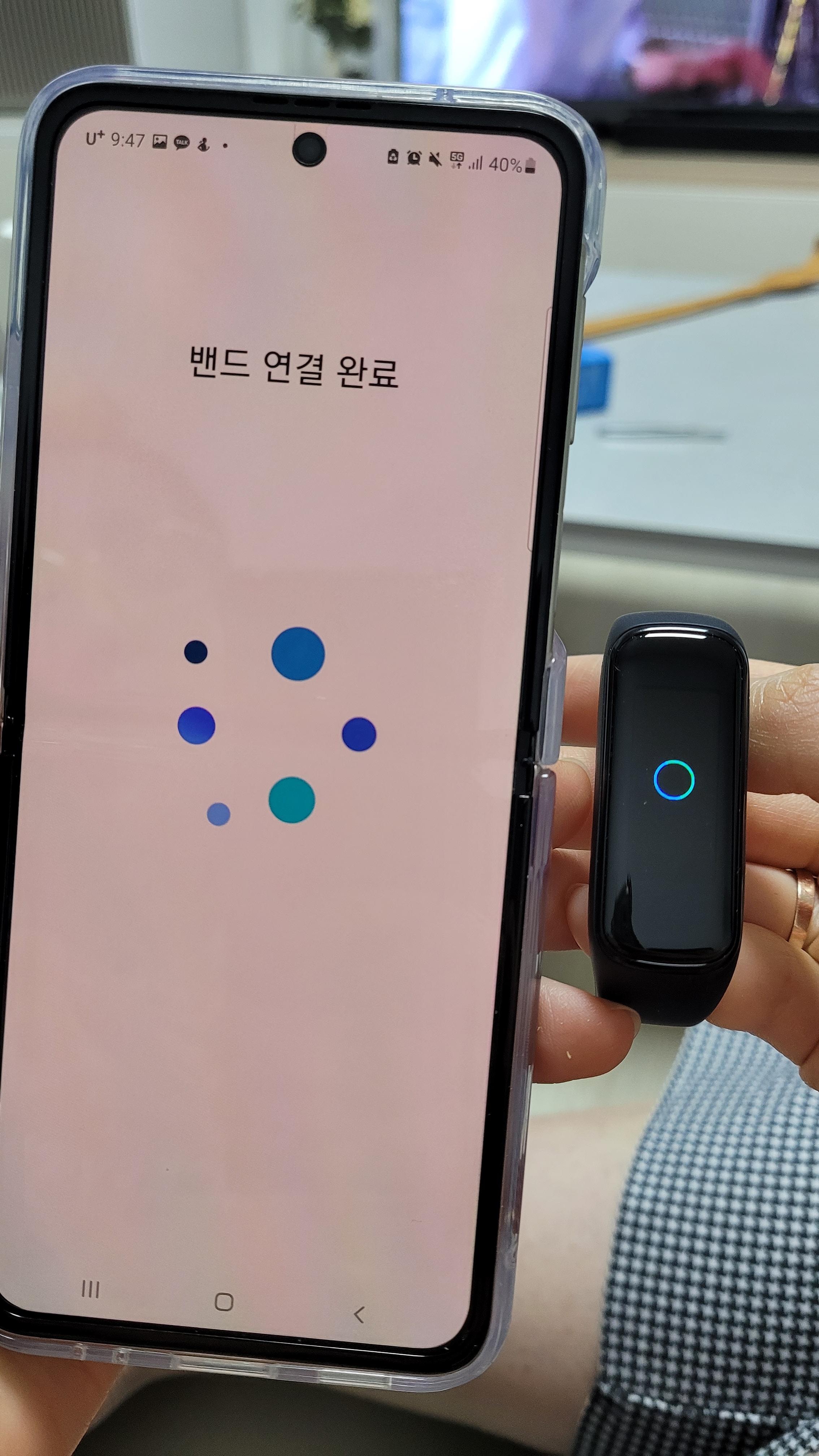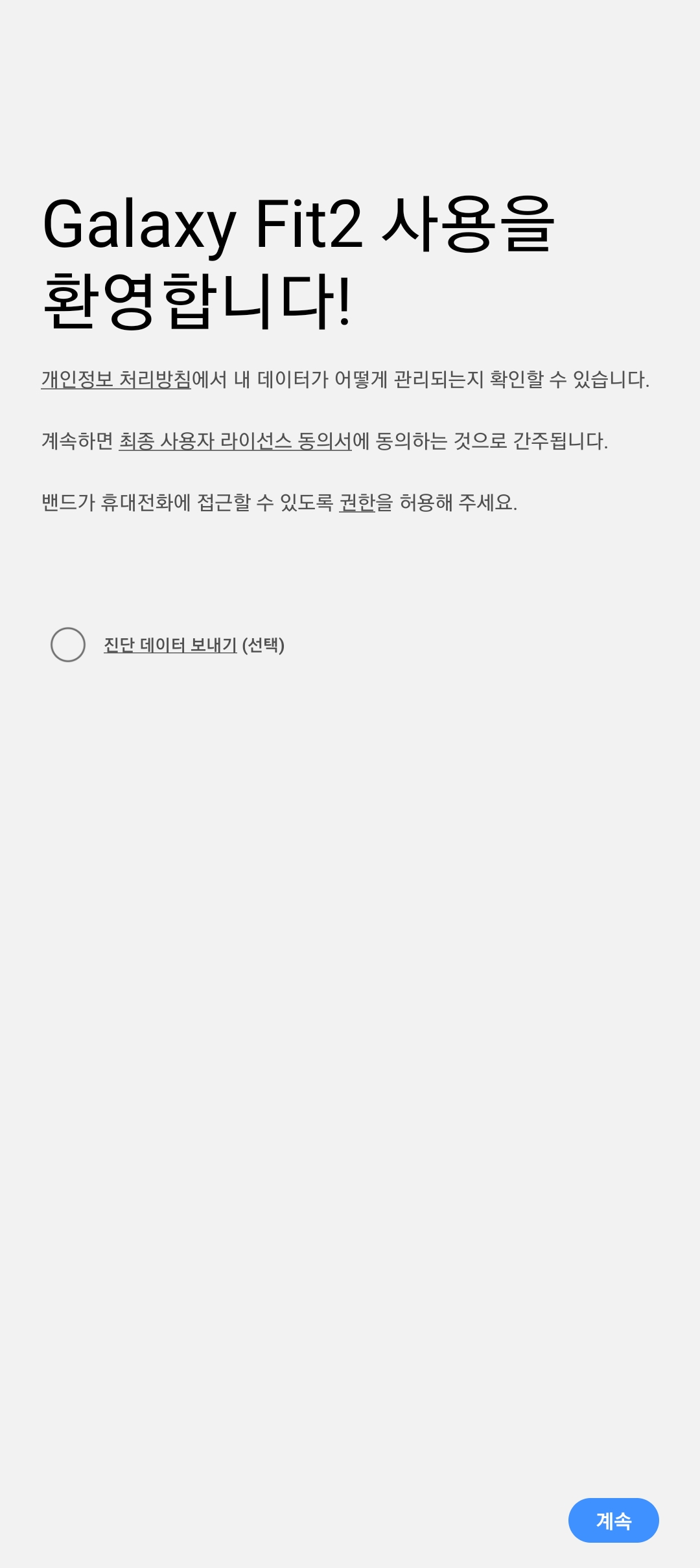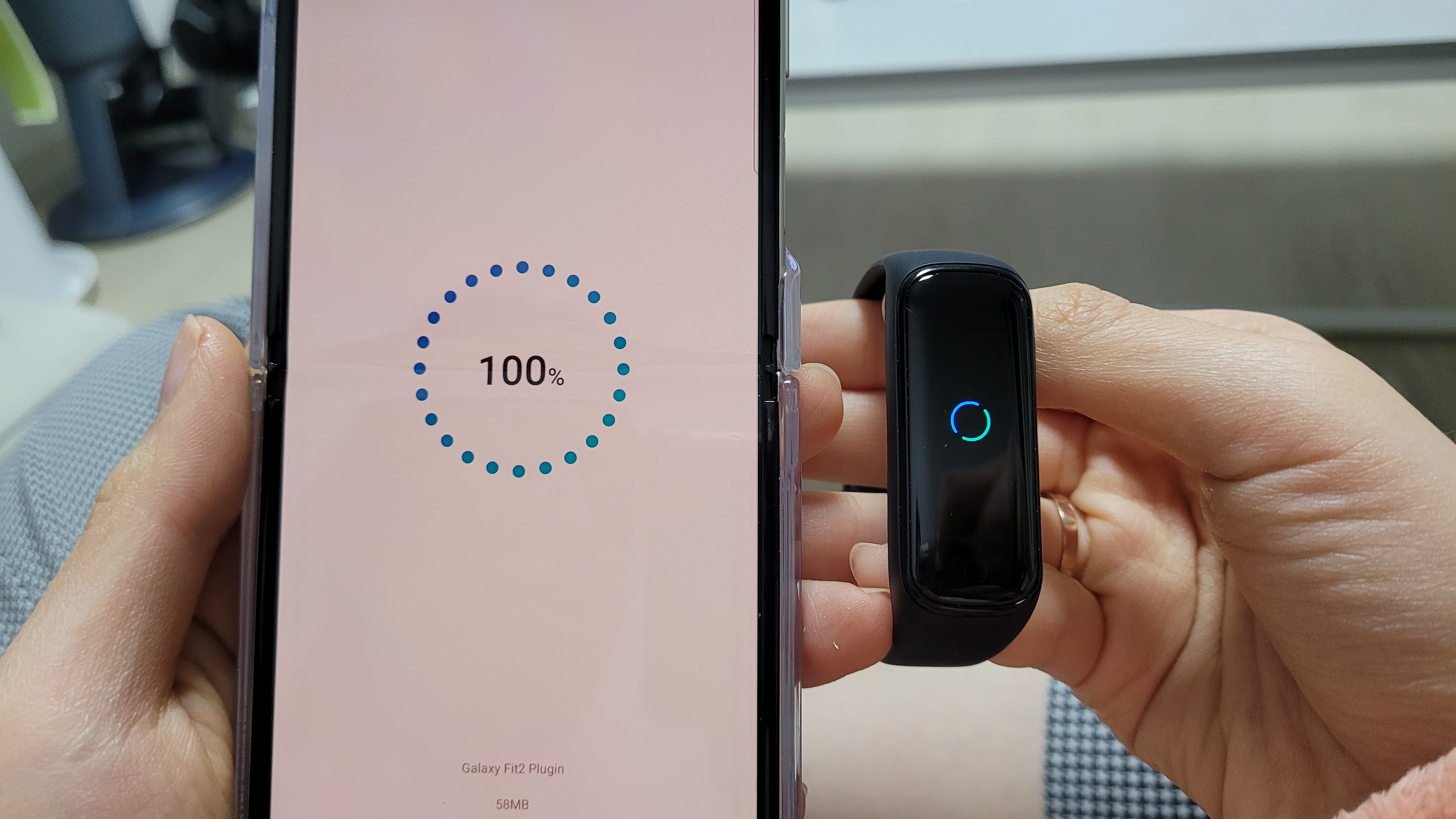 기기를 연결하면 갤럭시 핏2가 연동 될 준비를 하기 시작합니다.