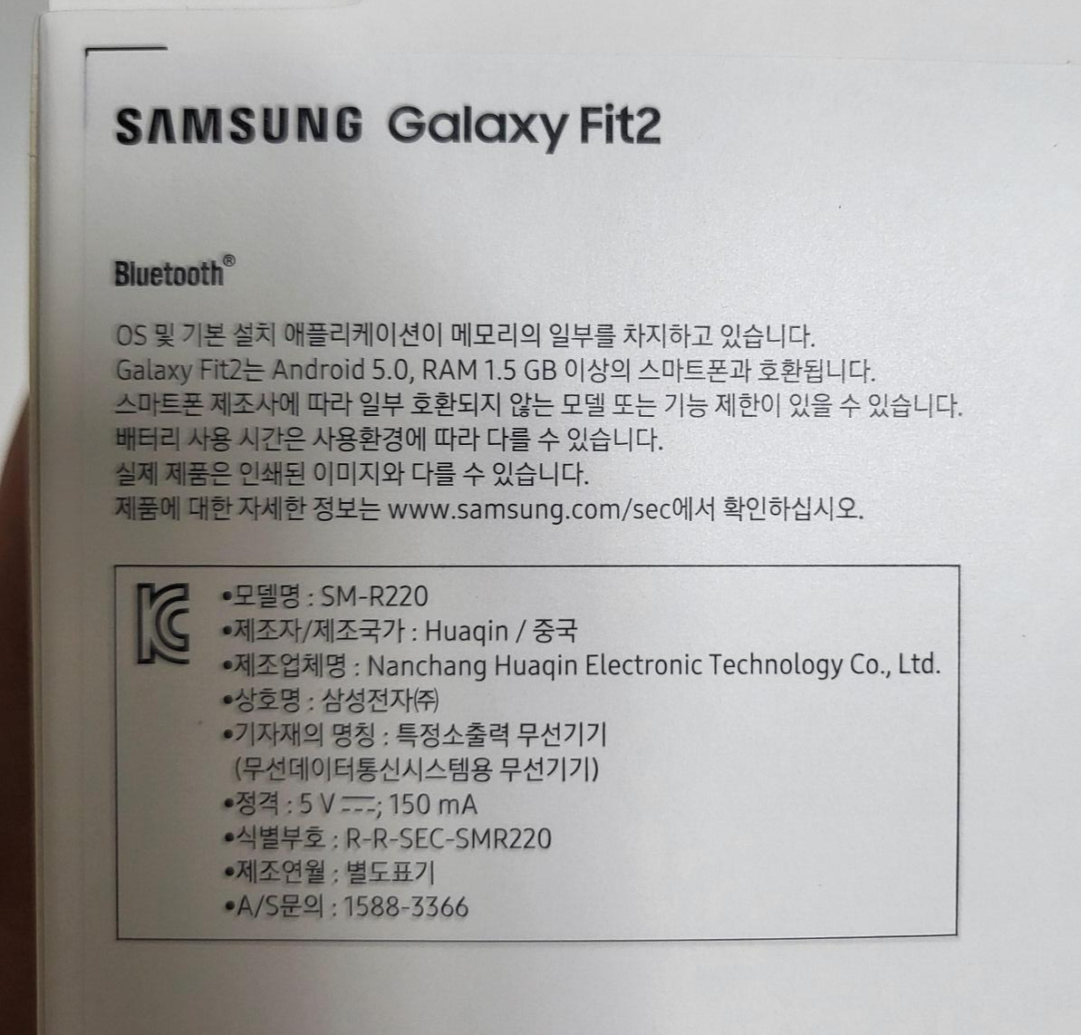 제조국가가 중국인 건 이해가 되는데 제조자, 제조업체명을 살펴보니 '난창 화친 전기 기술 회사'라고 기재되어 있습니다. 중국기업이 제조한 상품을 삼성 이름만 붙여서 판매하는 것이었습니다. 그래도 A/S는 삼성 서비스 센터에서 하니 다행이라고 봐야하나 모르겠네요. 샤오미 미밴드처럼 갤럭시 핏2도 중국 업체에서 생산하는 제품이라니... OEM도 아니고 ODM인 걸 자각하니 가격이 저렴한 이유를 알겠더군요.