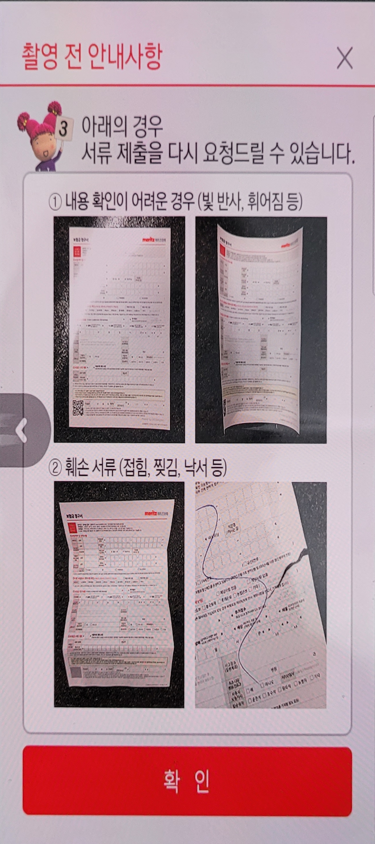 잘못 촬영된 서류가 있다면 고객센터에서 직접 전화가 오니 맘 편히 기다리기만 하면 될 것 같아요.