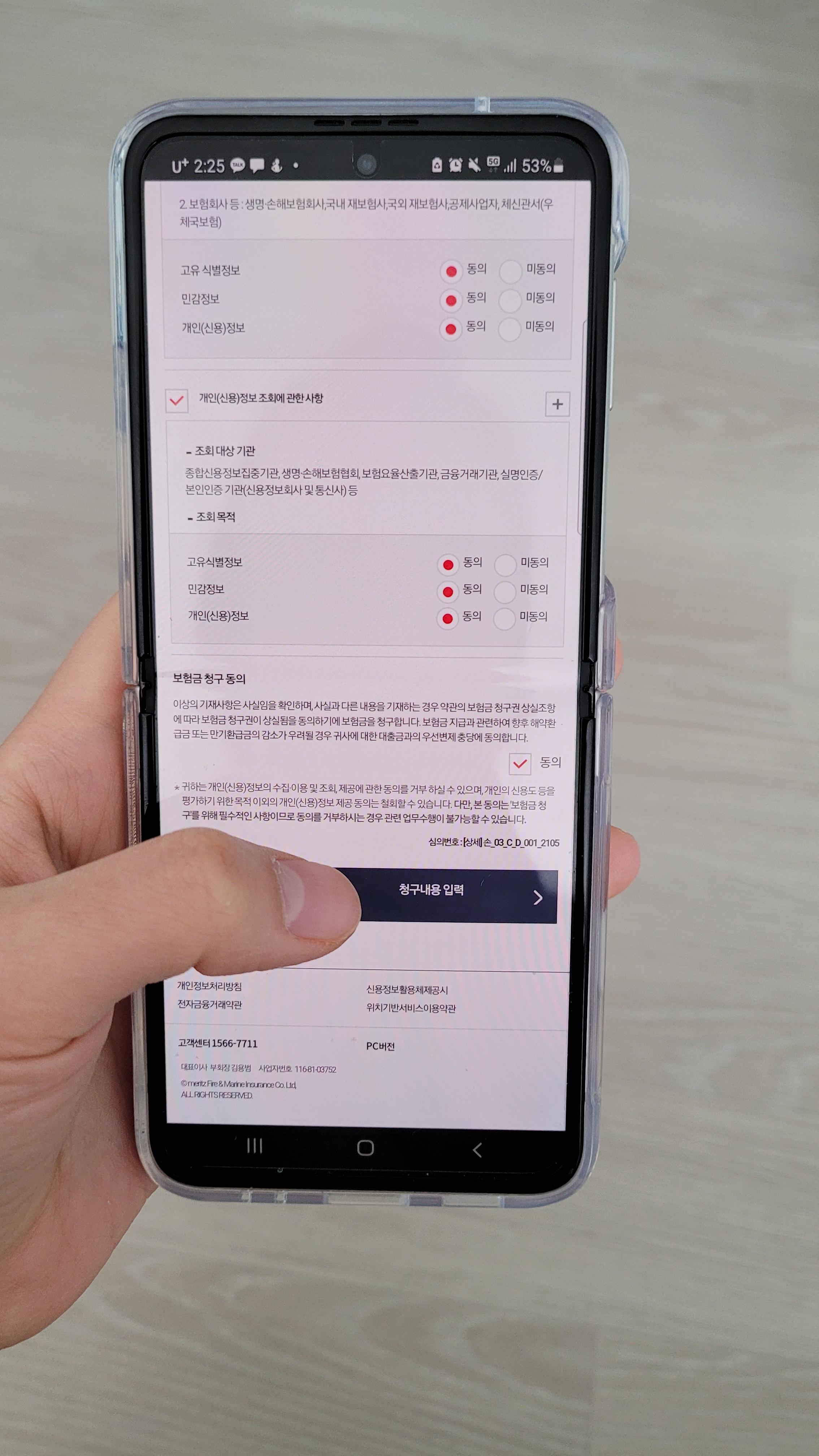저는 최대한 빨리 돌려받고 싶어서 메리츠화재 앱으로 신청했습니다.
