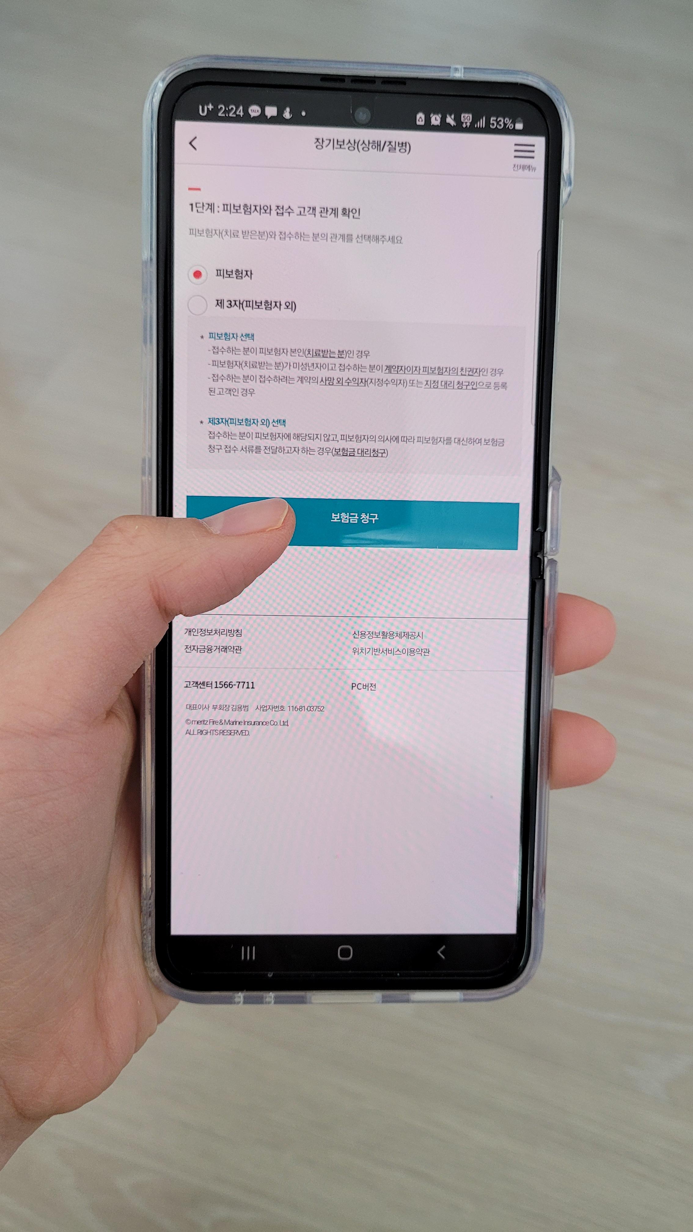 접수인이 피보험자 본인일 경우에는 피보험자를 선택하시면 되고, 피보험자가 아니라 대리로 청구하는 경우에는 제3자를 선택하세요. 보험금 청구 동의 절차를 거치고 청구 내용을 첨부하시면 됩니다!.