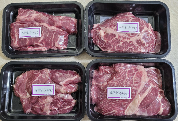 총 4가지의 부위가 있는데 부채살, 살치살, 토시살, 척아이롤입니다.
