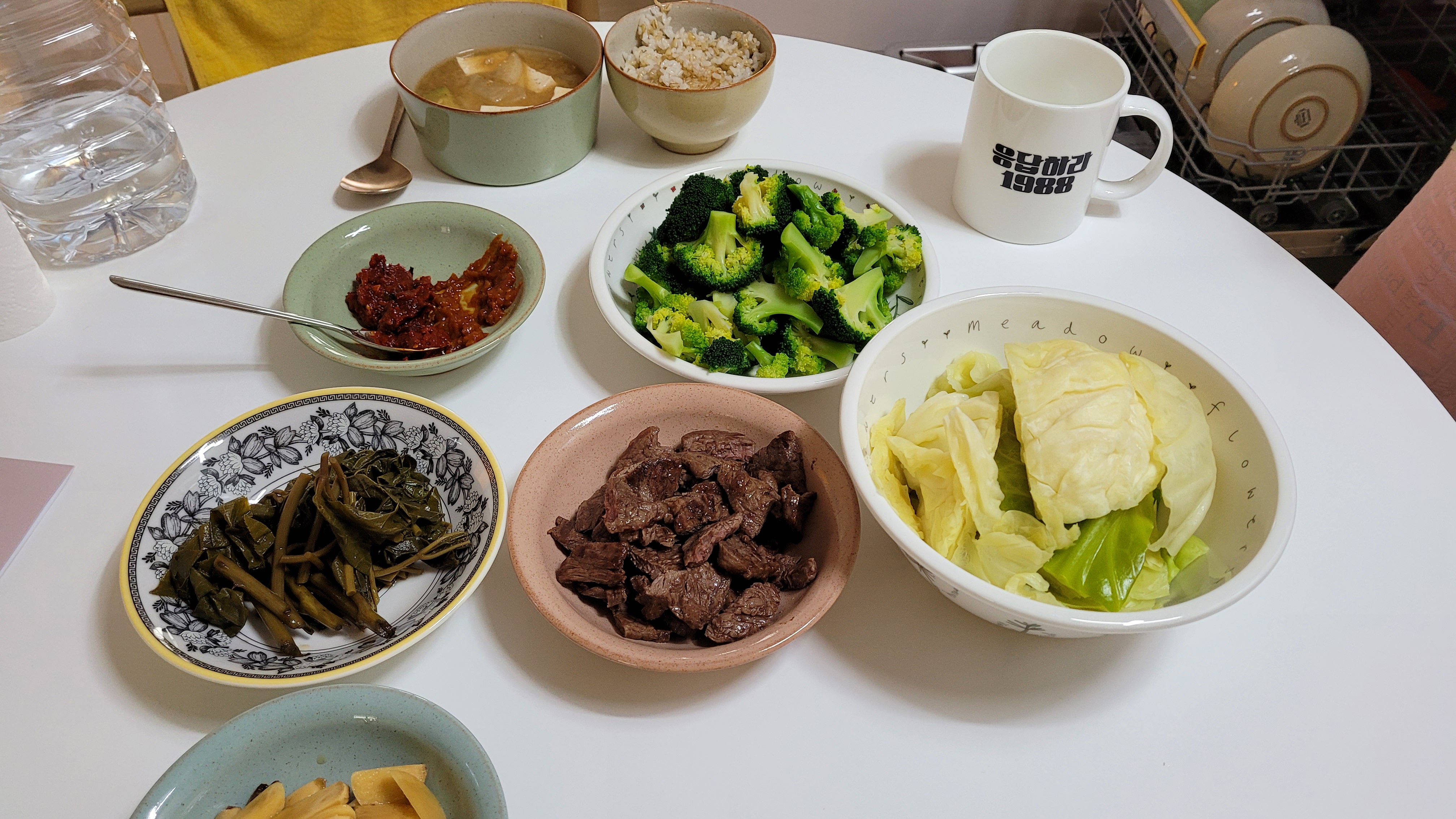 낮에 간단히 구워먹으려고 했는데 막상 고기를 굽다보니 쌈을 찾게되고, 마늘 장아찌도 꺼내고...된장찌개도 끓이면서 고기 한상을 본격적으로 준비해보았습니다.
