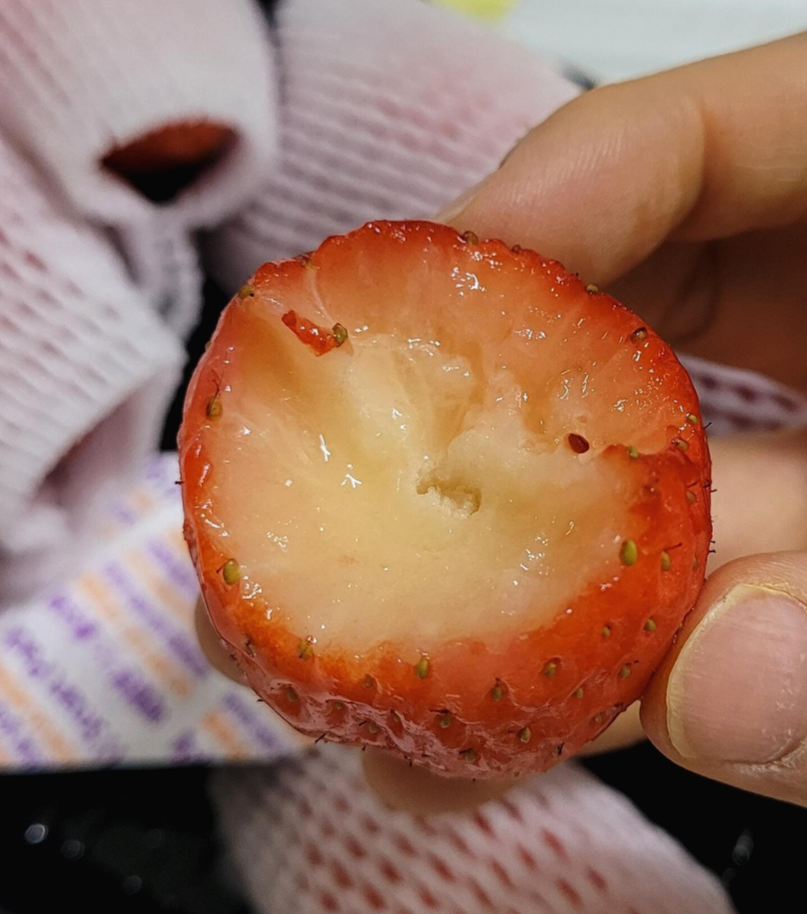 설향 딸기보다 부드럽고 장희 딸기보다는 단단한 과육이었고요.