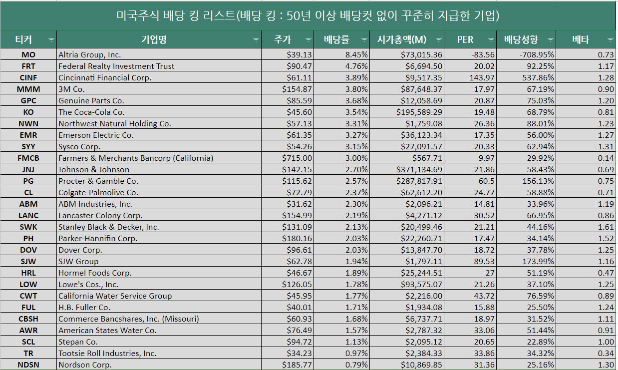 1. 배당킹 : Dividend Kings (50+ years of rising dividends)