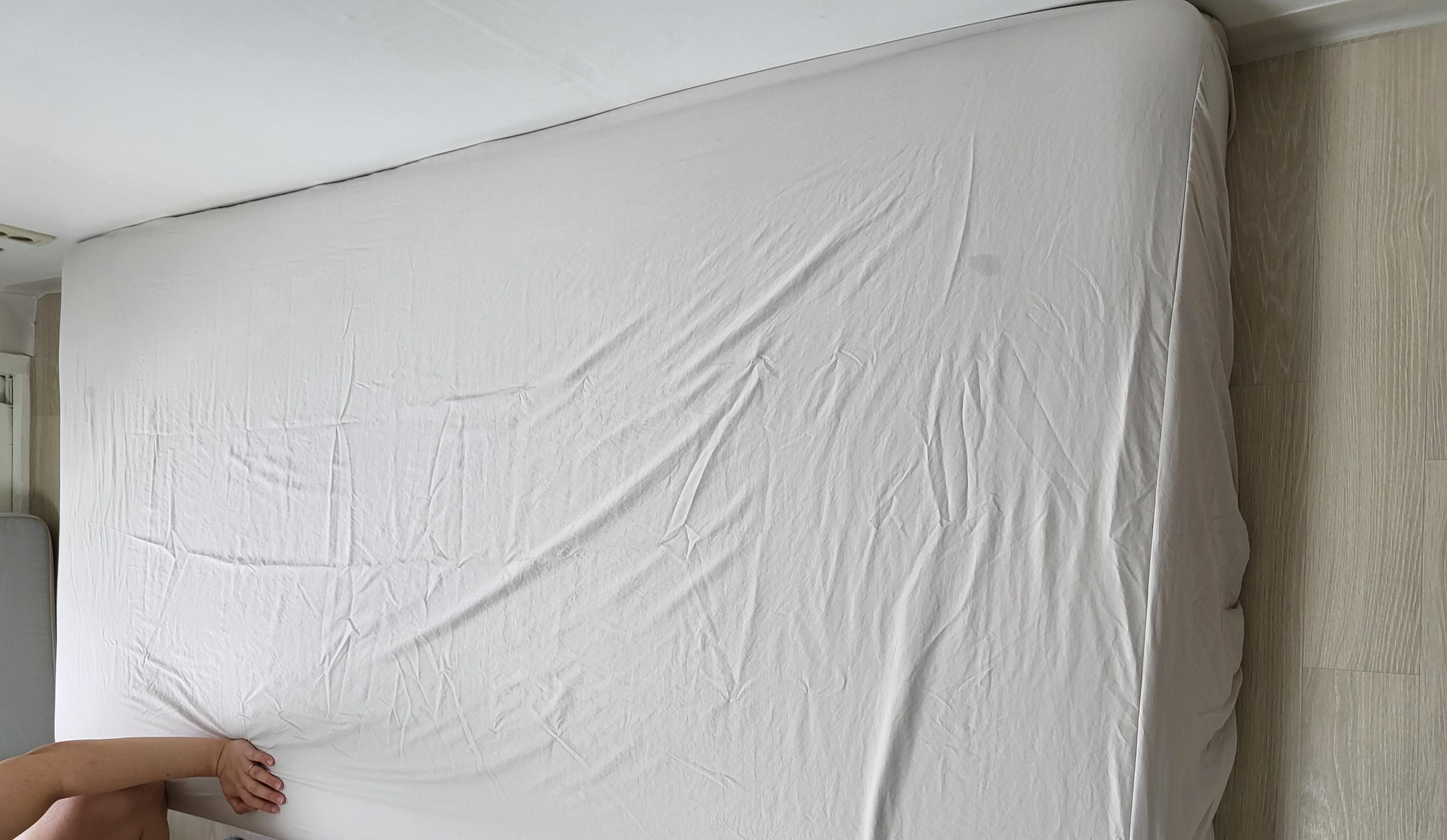 토퍼이기 때문에 도톰하고 폭신폭신한 느낌이 있고요. 이 때만 하더라도 사이즈가 맞을지, 씌웠을 때 정말 침대 느낌이 날지 걱정스러웠습니다..