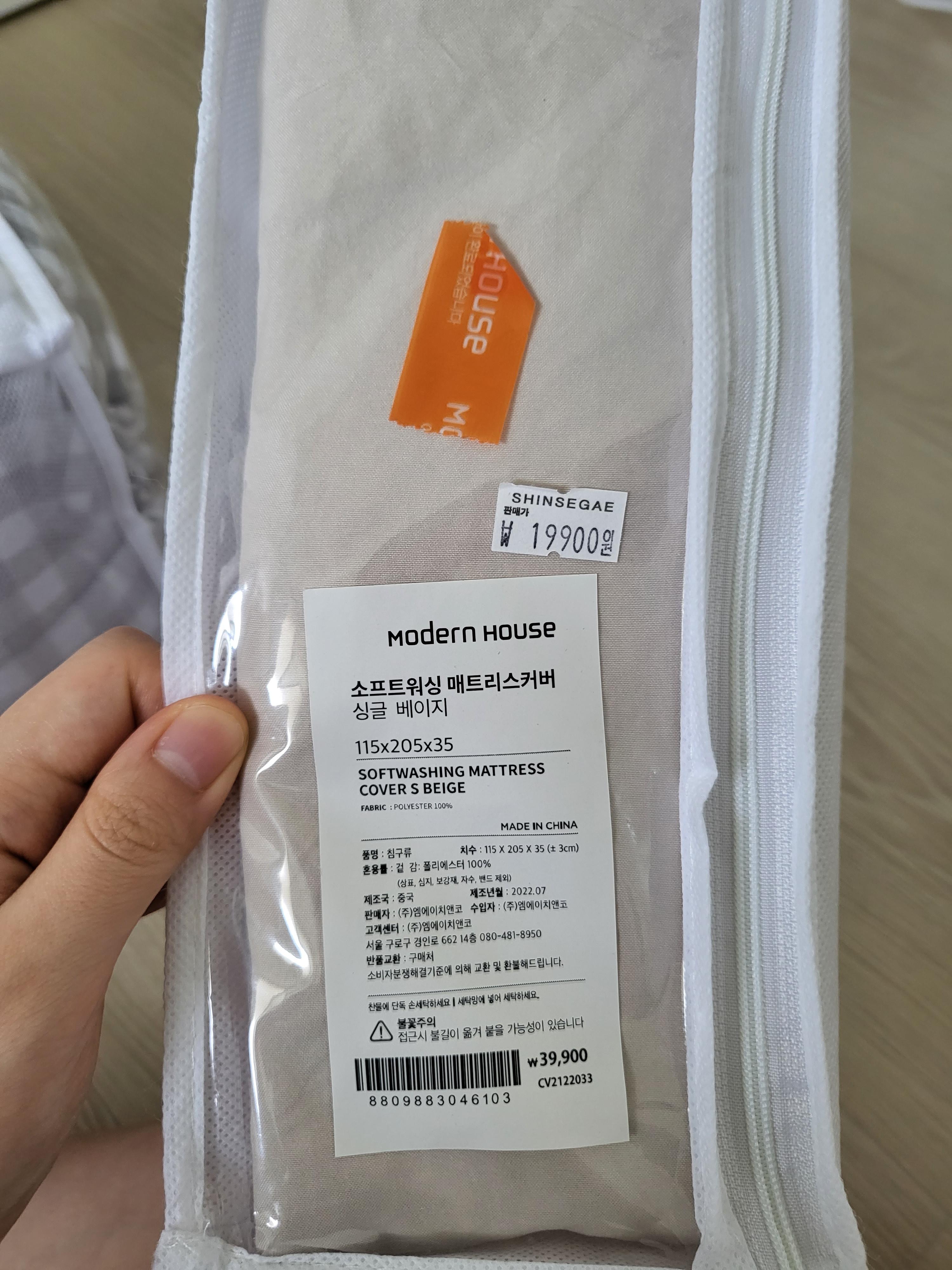 앞서 적은 것과 같이 에이스 베이지 체크 알러지케어 싱글토퍼(42,900원이지만 20% 할인 받음), 소프트워싱 매트리스 커버(19,900원)입니다.