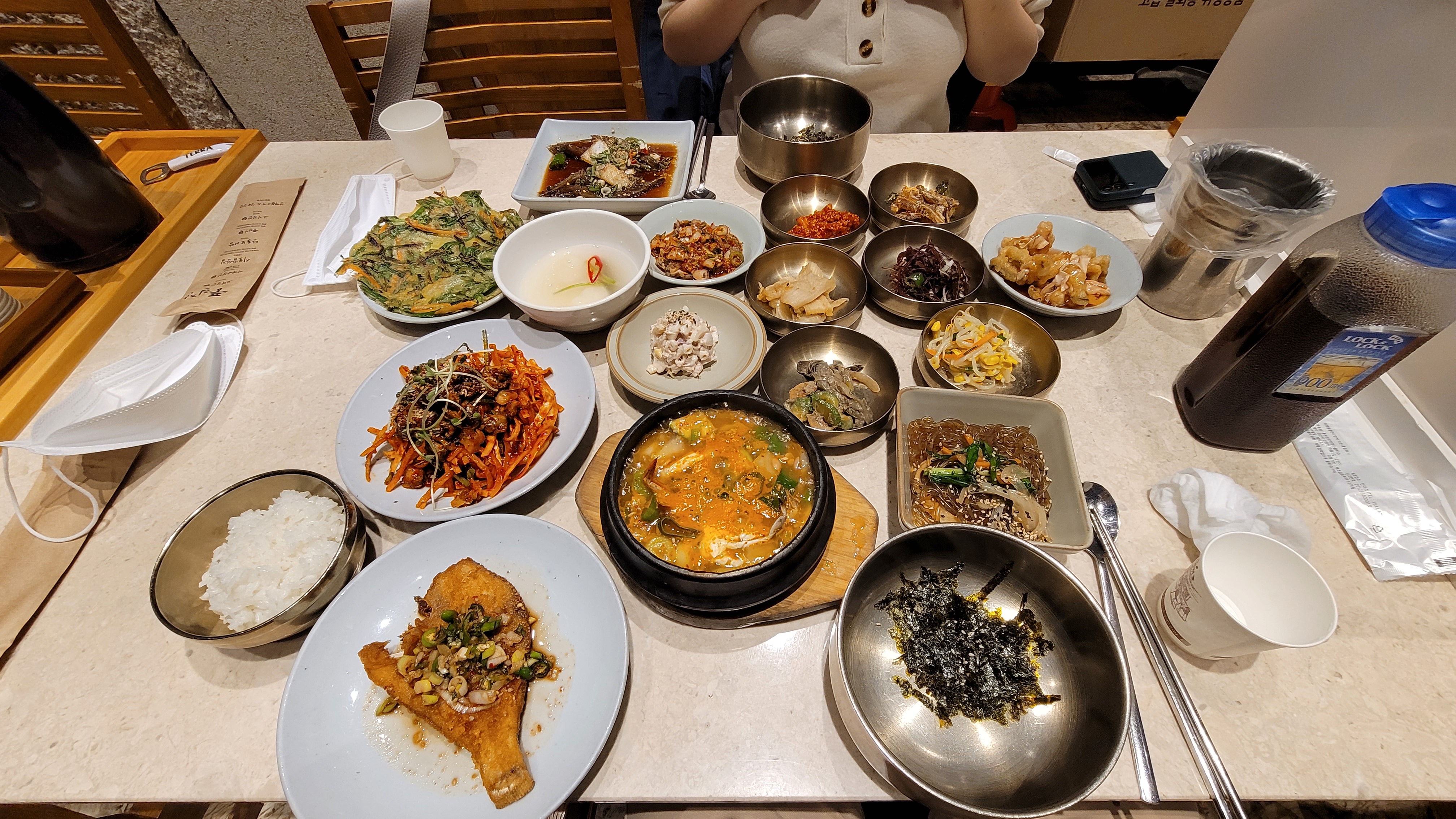 사람도 많고 체계적인 식당이라서 그런지 주문한 지 얼마 되지 않아 거의 모든 메뉴가 서빙되었습니다.