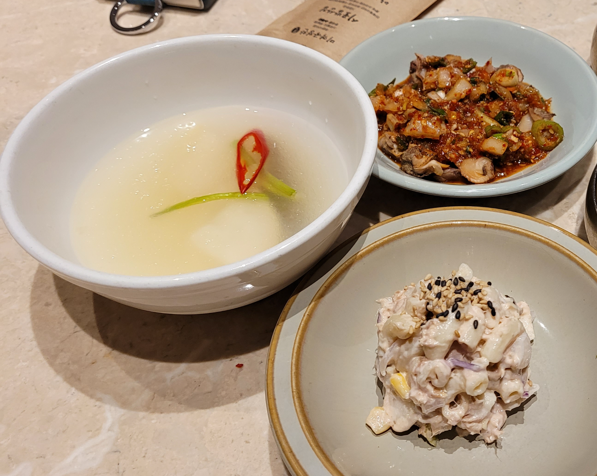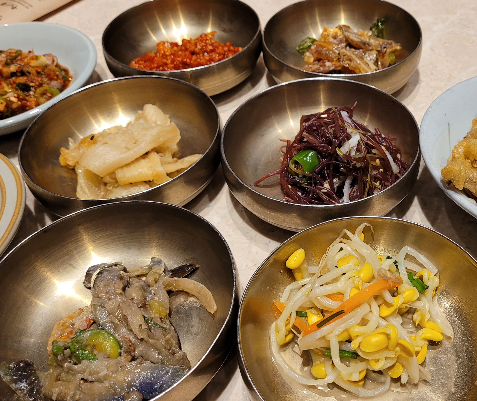 콩나물, 가지나물, 해초무침부터 백김치, 젓갈류가 있었고요. 동치미, 참치 마요네즈 샐러드와 또다른 꼬막 반찬까지 참 다양했어요. 간은 슴슴하기 보다는 센 편입니다. 다양한 반찬이 좋지만 먹을 만한 다른 메인 메뉴들이 많아서 손이 많이 가지는 않았어요.