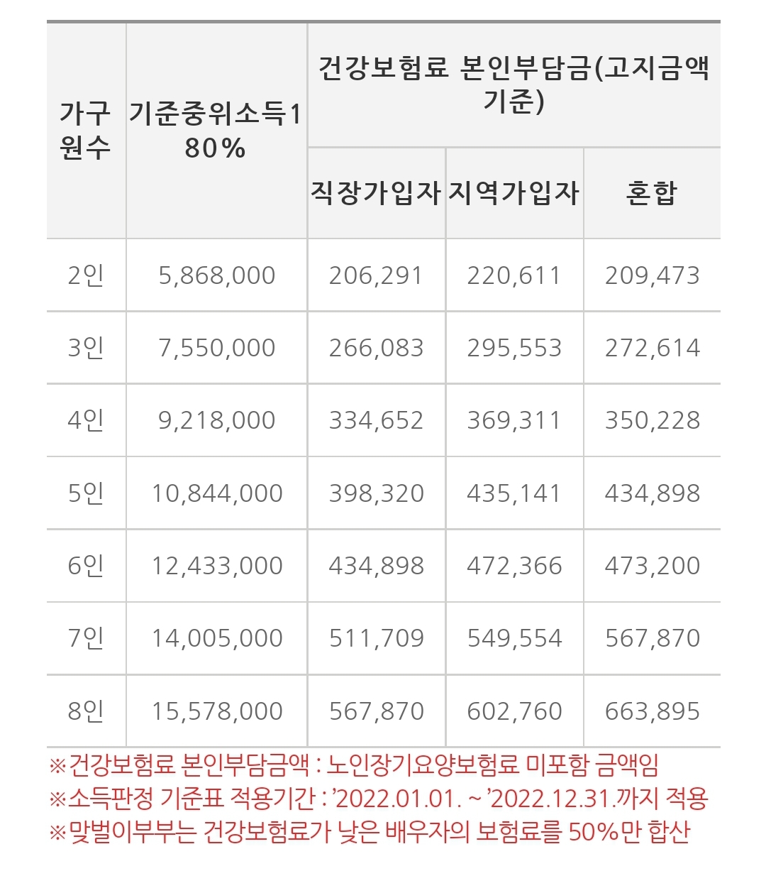 우선 기준중위소득으로 180% 이하 가구만 혜택을 받을 수 있는데 소득판정 기준표는 아래 이미지를 참고하시면 됩니다~