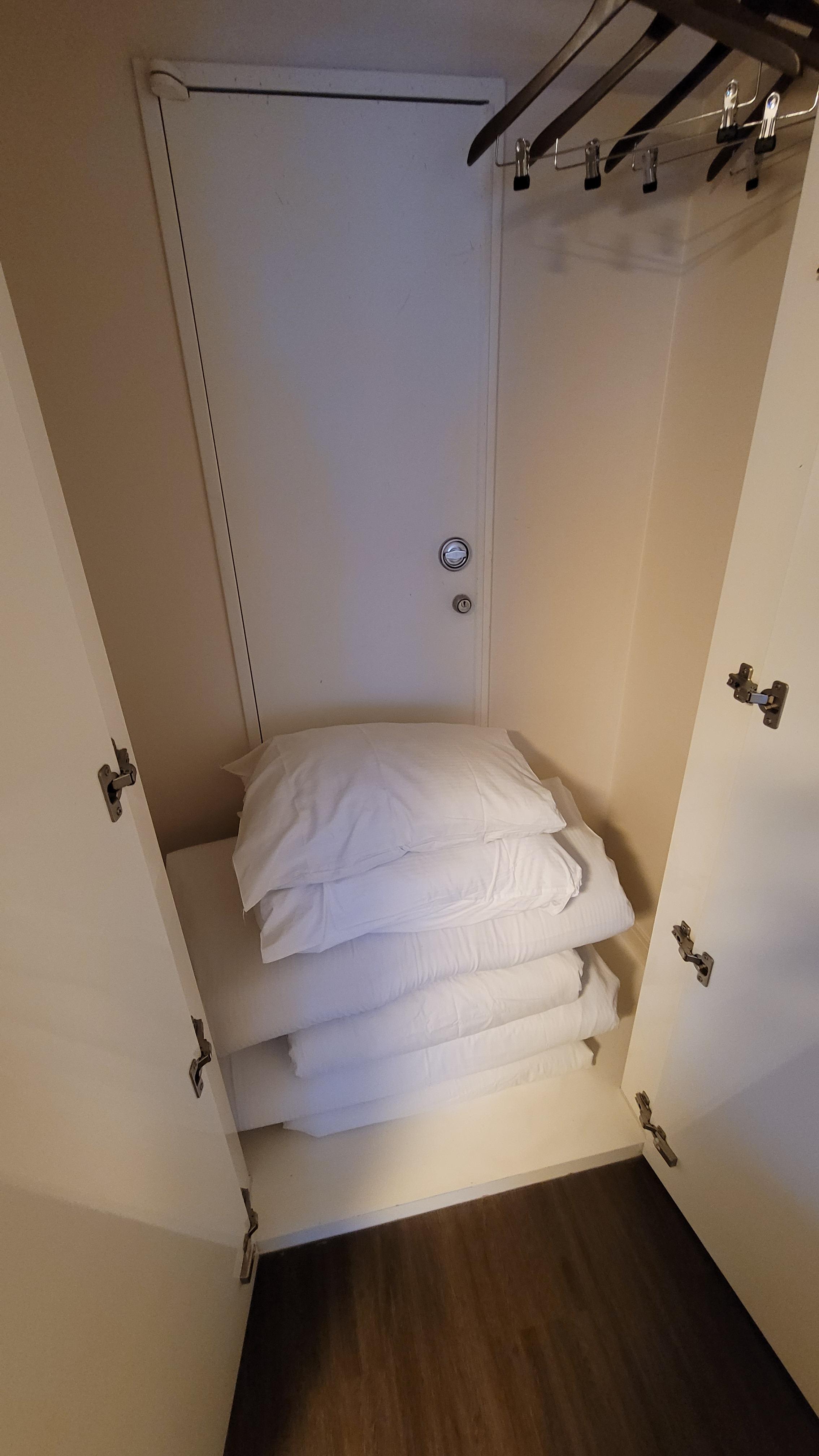 옷장도 제법 넉넉하고 추가 침구류도 구비되어 있었어요. TV를 볼 때는 소파에 앉기 보다는 바닥에 이불을 깔고 누워서 봤어요. 기분 탓인지 침대보다 추가 침구류가 더 푹신한 느낌도 들었네요. 저희는 두 명이서 숙소에 묵었지만 침대에 두 명, 바닥에 두 명 누워서 총 4명까지는 충분해보였습니다.