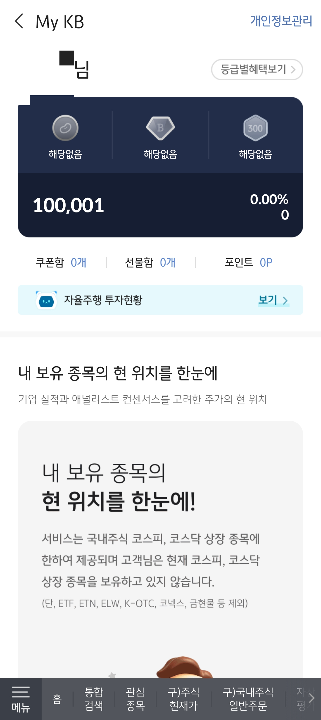해외 주식이 가능한 계좌로 개설하려고 키움증권 연계 계좌 개설을 요청드렸는데 KB증권으로 밖에 안된다고 하시더라고요. 인터넷에서 타사 증권사 연계 계좌로의 개설도 되는 걸로 확인했는데 뭐지 싶었습니다. 증권사 연계 계좌를 잘 모르는 은행 직원들이 있다고 들었는데 그런 경우인지, 아니면 실적을 위해 KB 증권 가입을 유도한건지 참 아쉬웠어요. 그래도 KB 증권으로 계좌를 개설하면 증권사 계좌로 이체할 필요없이 바로 주식 투자가 가능해서 그 부분은 장점이었습니다.