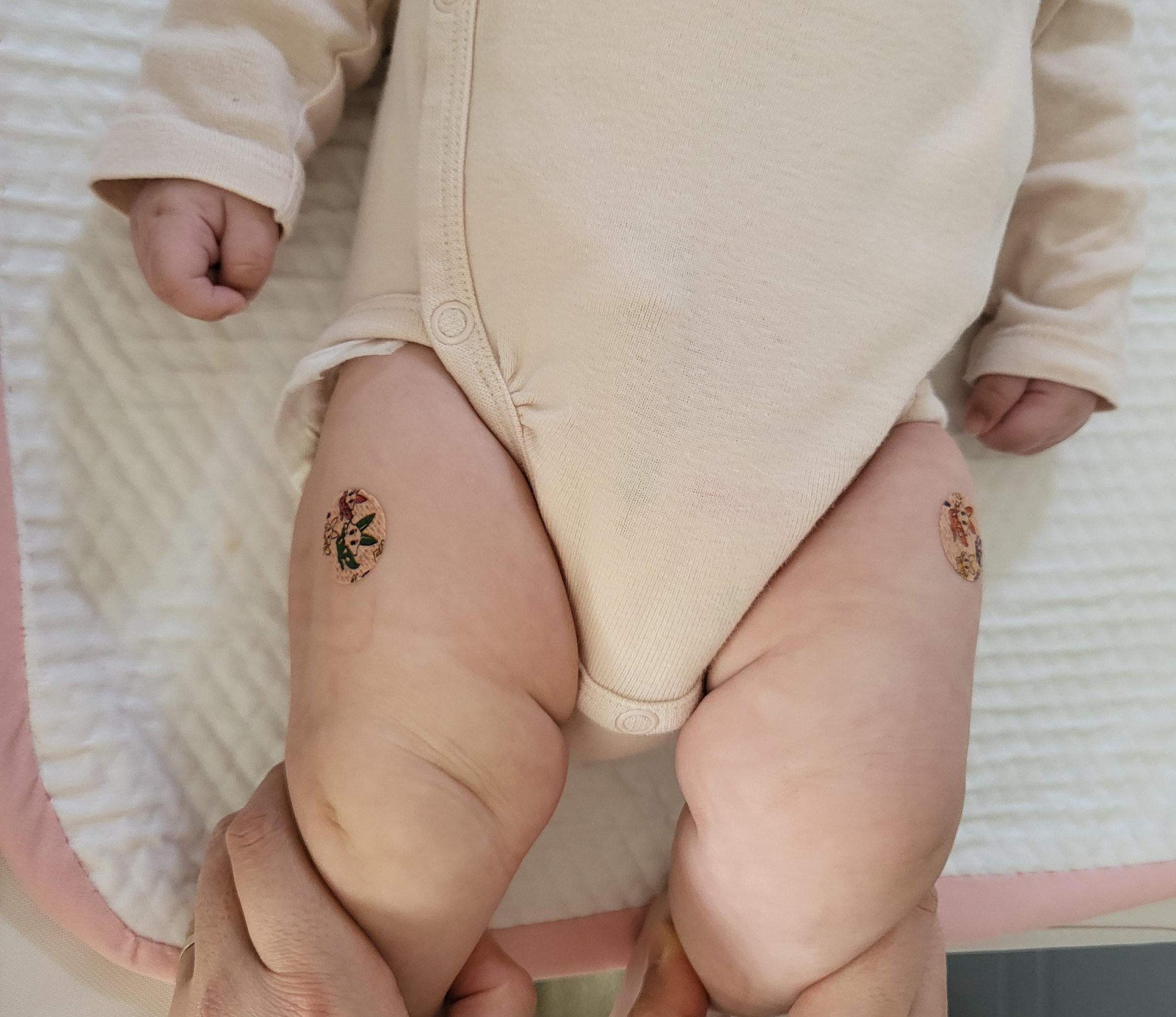 2개월 예방접종은 디프테리아, 파상풍, 백일해, 폴리오, b형 인플루엔자, 폐렴구균인데요. 이 많은 예방접종을 하루에 어떻게 하나 걱정했는데 펜탁심과 프리베나 13으로 두 대만 맞으면 된다고 하시더라고요. 돌 전까지는 허벅지에 접종을 하는데 붓기가 있을 수 있는 주사는 왼쪽 허벅지에, 아픈 주사는 오른쪽 허벅지에 접종해주셨어요.