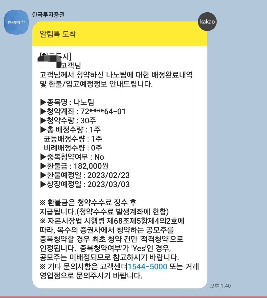 셋 중에 가장 기대감이 높다는 나노팀은 균등 배정이 0주 혹은 1주였는데요. 다행히 1주를 배정 받았고요. 3월 3일에 상장 예정입니다.