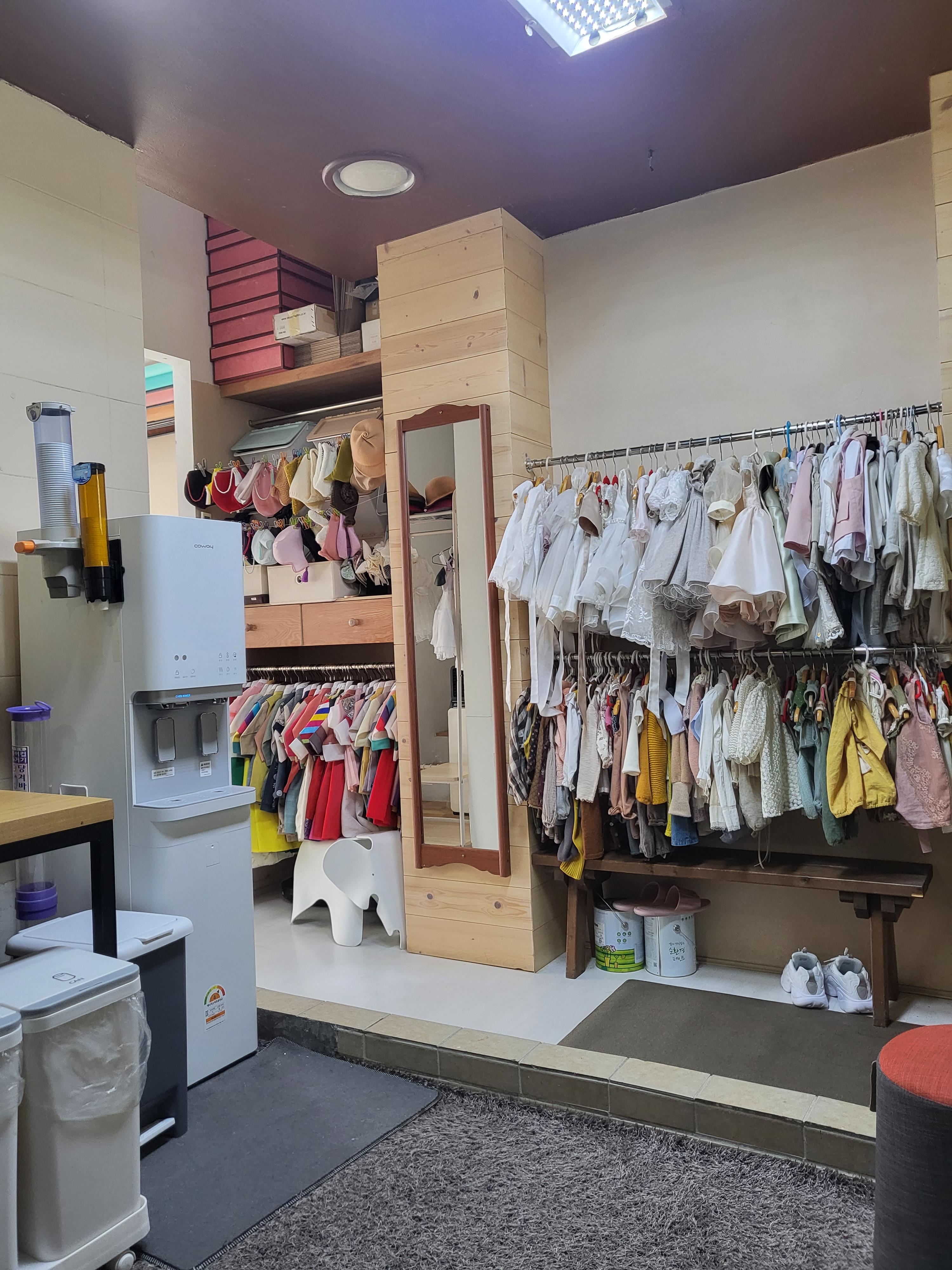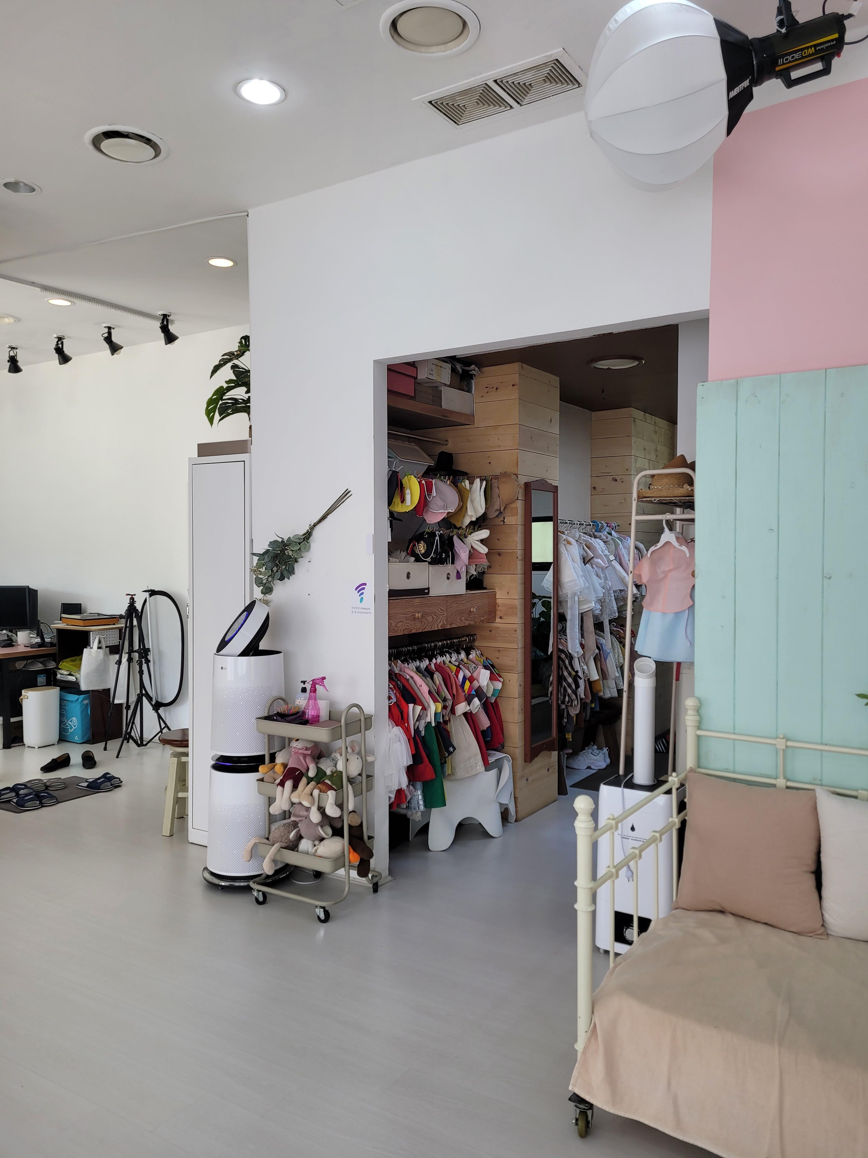 스튜디오 내부를 둘러보았더니 저희가 찍은 컨셉은 아니지만 돌 아이를 위한 돌상 컨셉이 있더라고요. 돌잔치를 간단하게 하신다면 사진관에서 이렇게 전통 돌상 컨셉으로 촬영하는 것도 좋아보였어요. 사진 촬영 공간은 크지 않지만 소품이 다양하기도 하고, 공간을 잘 활용해서 원하는 사진들을 찍어주십니다.