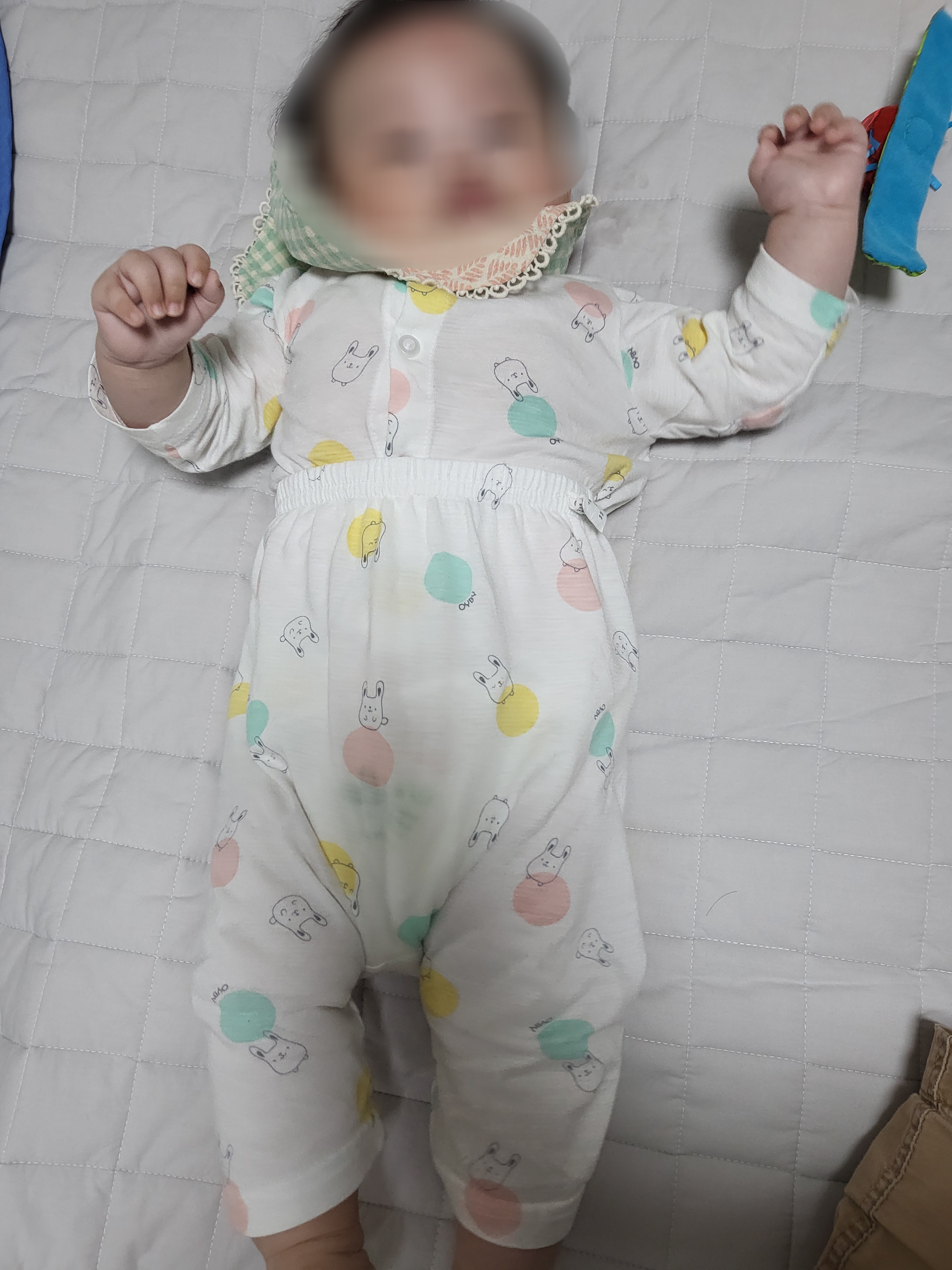 120일 아기에게 어떤 사이즈가 잘 맞을지 고민하다가 가을까지 입힐 예정이니 넉넉하게 80사이즈로 골라봤어요. 100일 즈음에 선물받은 코코하니 실내복 80 사이즈를 입혔었는데 그렇게 큰 편은 아니라서 괜찮겠다 싶었거든요.