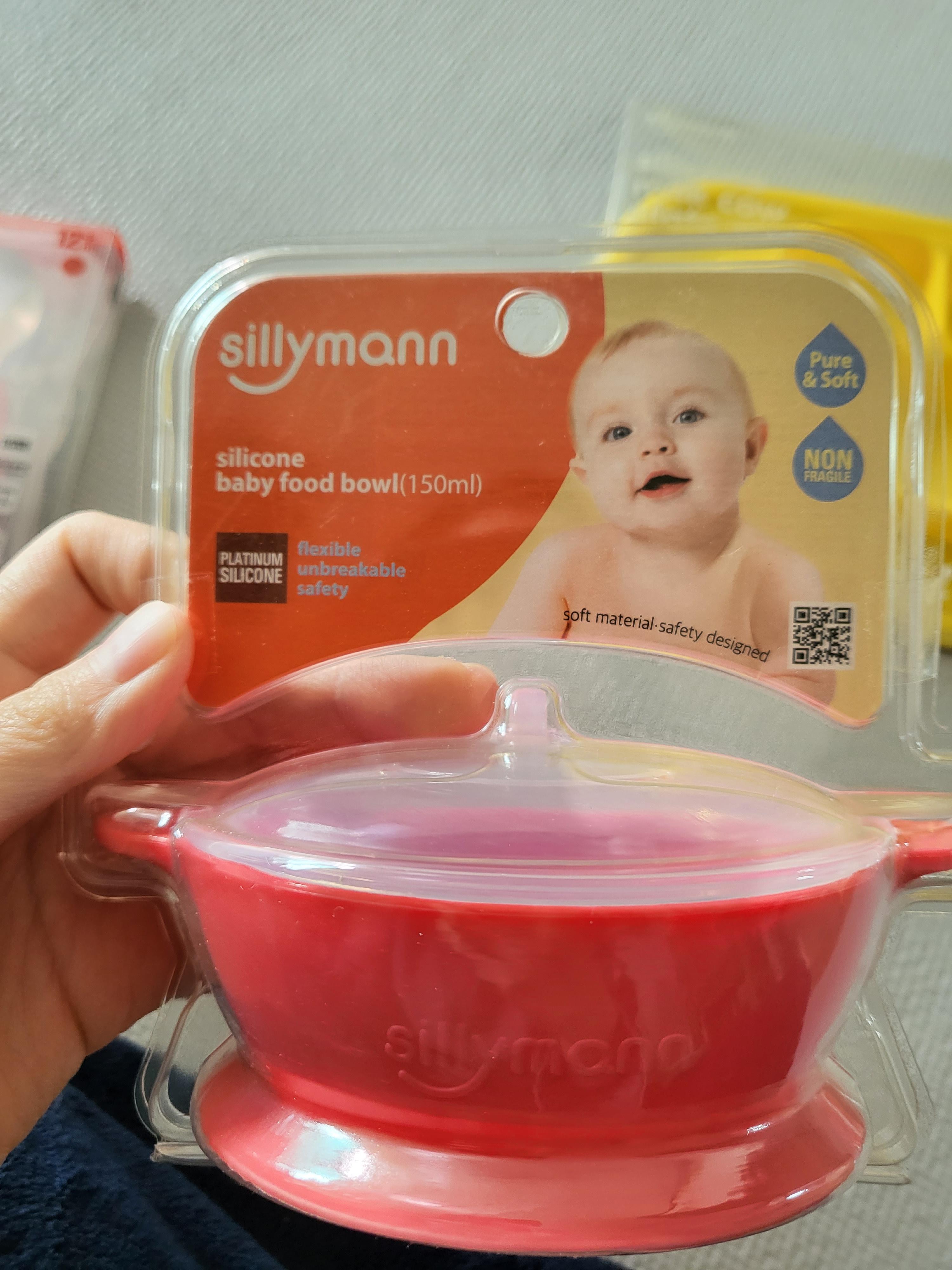 귀요미 이유식 용기입니다. 이 용기는 흡착이 되니 추후에 자기주도 이유식을 할 때도 유용하게 사용할 수 있어요. 150ml라서 그런지 생각보다 미니미하더라고요. 뚜껑까지 실리콘이라서 전자레인지에 데울 때도 걱정 없이 사용할 수 있다는 점! 그런데 실리만은 한국 브랜드임에도 불구하고 제품 앞면만 보면 미국에서 팔릴 것 같은 느낌이네요. 죄다 영어로 되어 있는데 해외 진출을 노리는 걸까요?