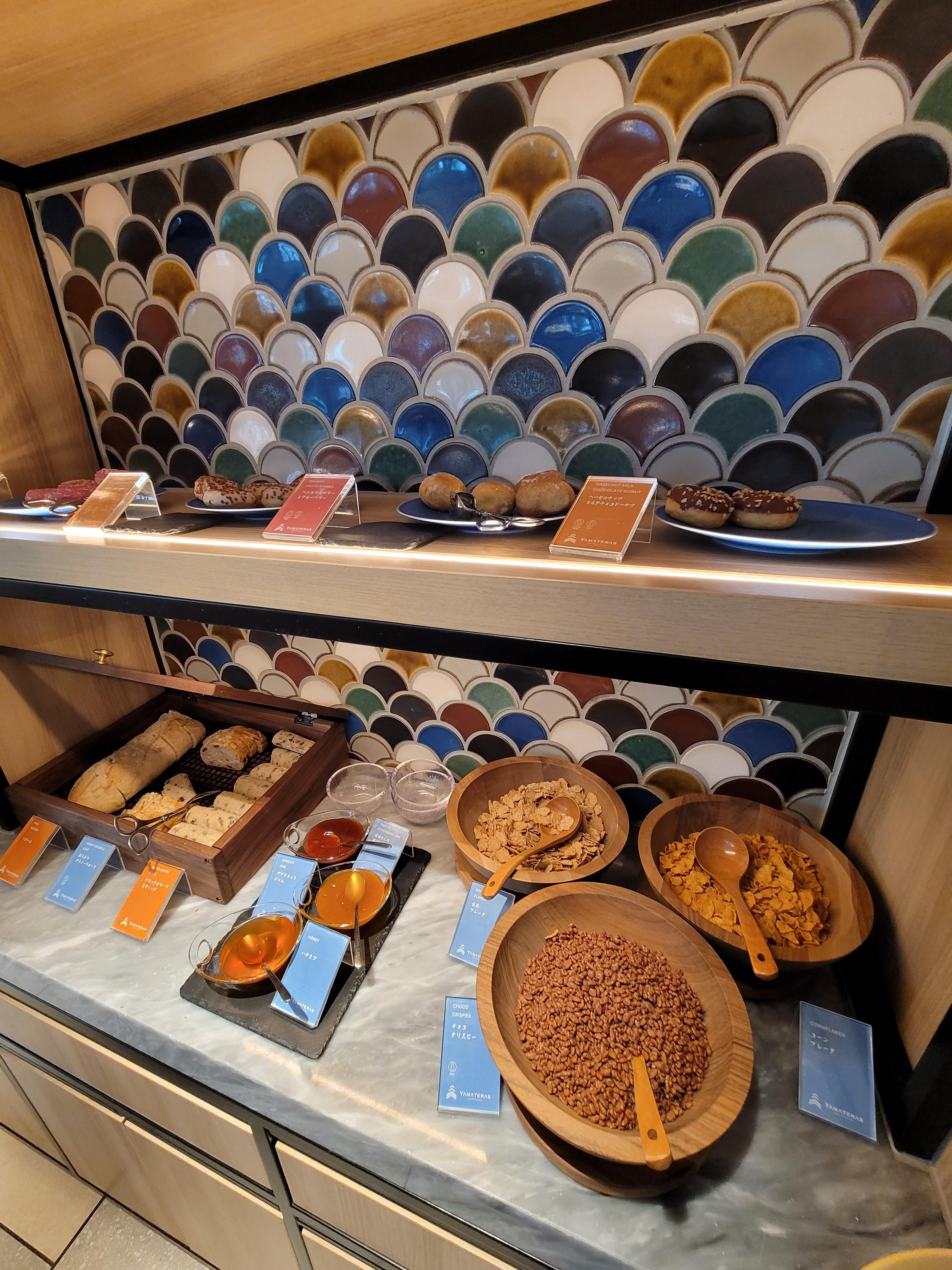 시리얼, 식사빵, 디저트 코너입니다. 알고 보니 이 곳이 곤트란쉐리에 베이커리의 빵을 제공한다고 하더라고요. 곤트란쉐리에 시그니처인 크루아상도 비치되어 있었습니다. 식사빵도 바게트, 치아바타 등 담백한 빵들로 구성되어 있고 시리얼도 세 가지에 뮤슬리까지 먹을 수 있었어요.