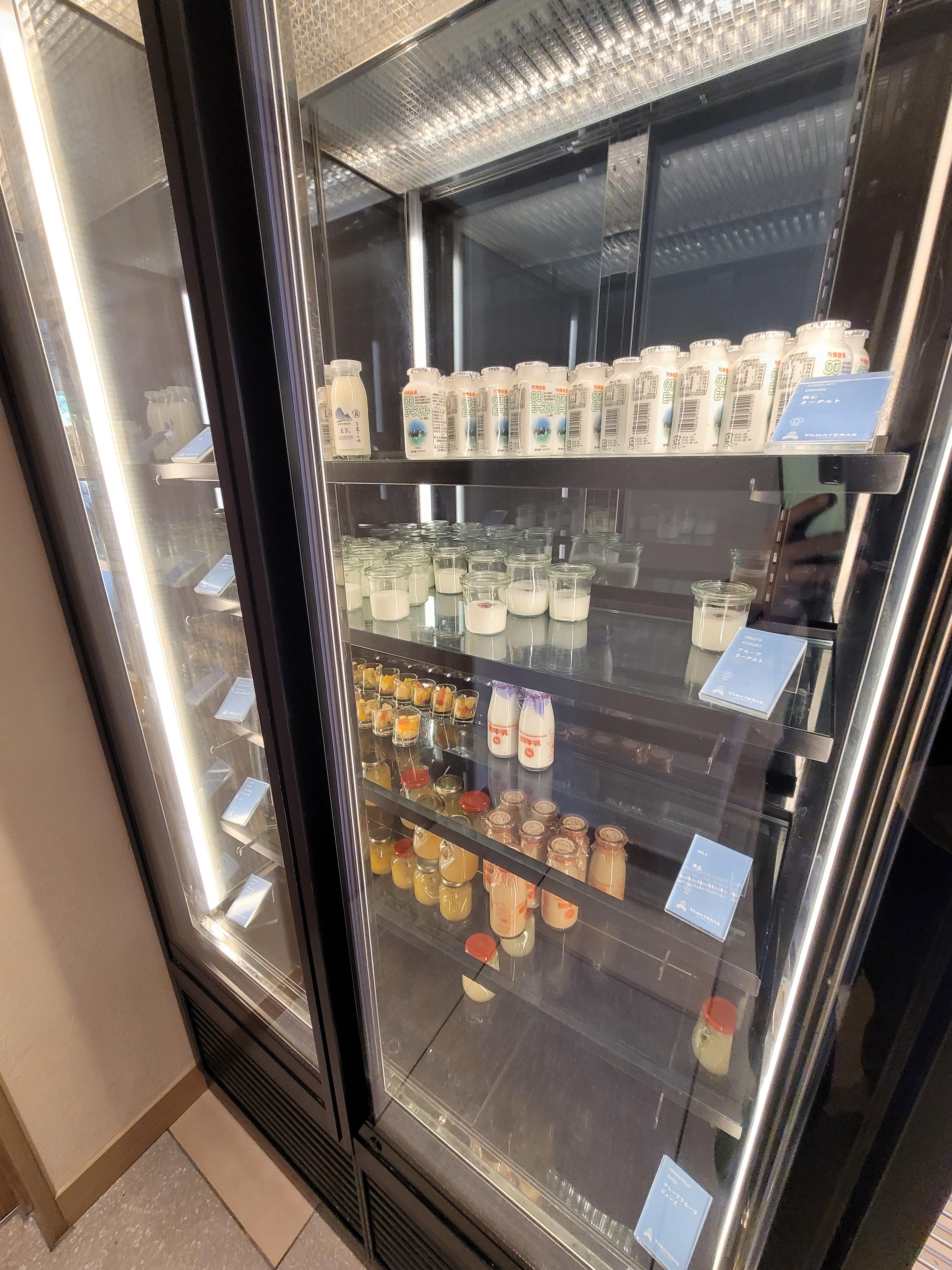 주스, 두유, 우유, 요거트 등 음료 코너입니다. 일본 일상 유튜버인 하라님 브이로그를 보면 일본에는 지역 특산품들이 잘 발달되어 있던데 호텔에서도 이 지역에서 생산한 두유와 우유를 제공하고 있더라고요.