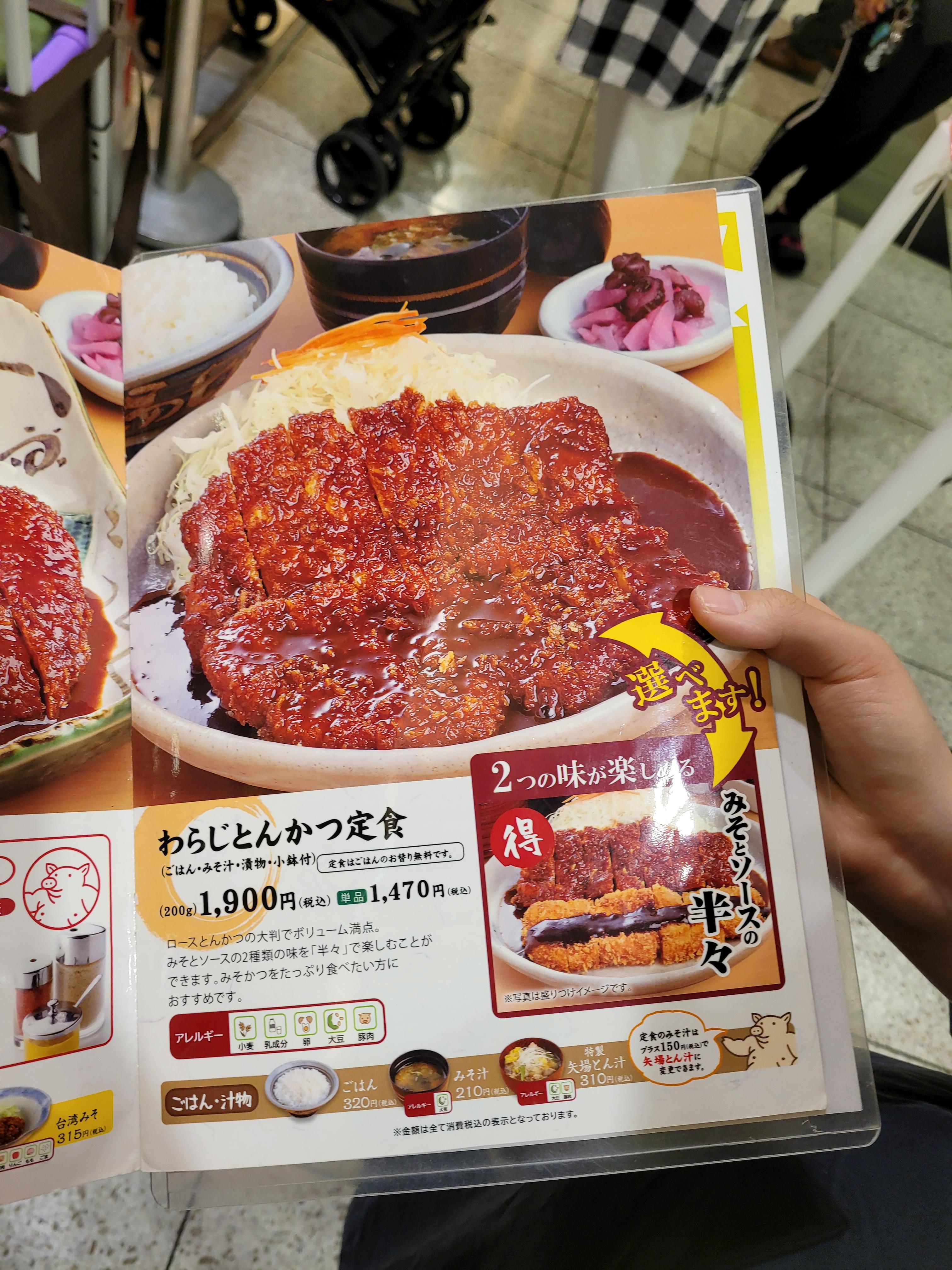 매장 앞 디스플레이 된 샘플 메뉴입니다. 가장 윗줄에 철판 카츠가 있어 인기가 많은가 했더니 저희가 앉아있을 때는 매장 내에서 남편만 먹고 있었어요. 요즘 나온 신메뉴인가 싶기도 하고요. 미소카츠가 한국말로 된장돈까스라고 하는데...음식이 나오기 전까지 맛이 있을지 궁금하더군요. 된장과 돈까스가 잘 어우러지는지 의아했습니다.