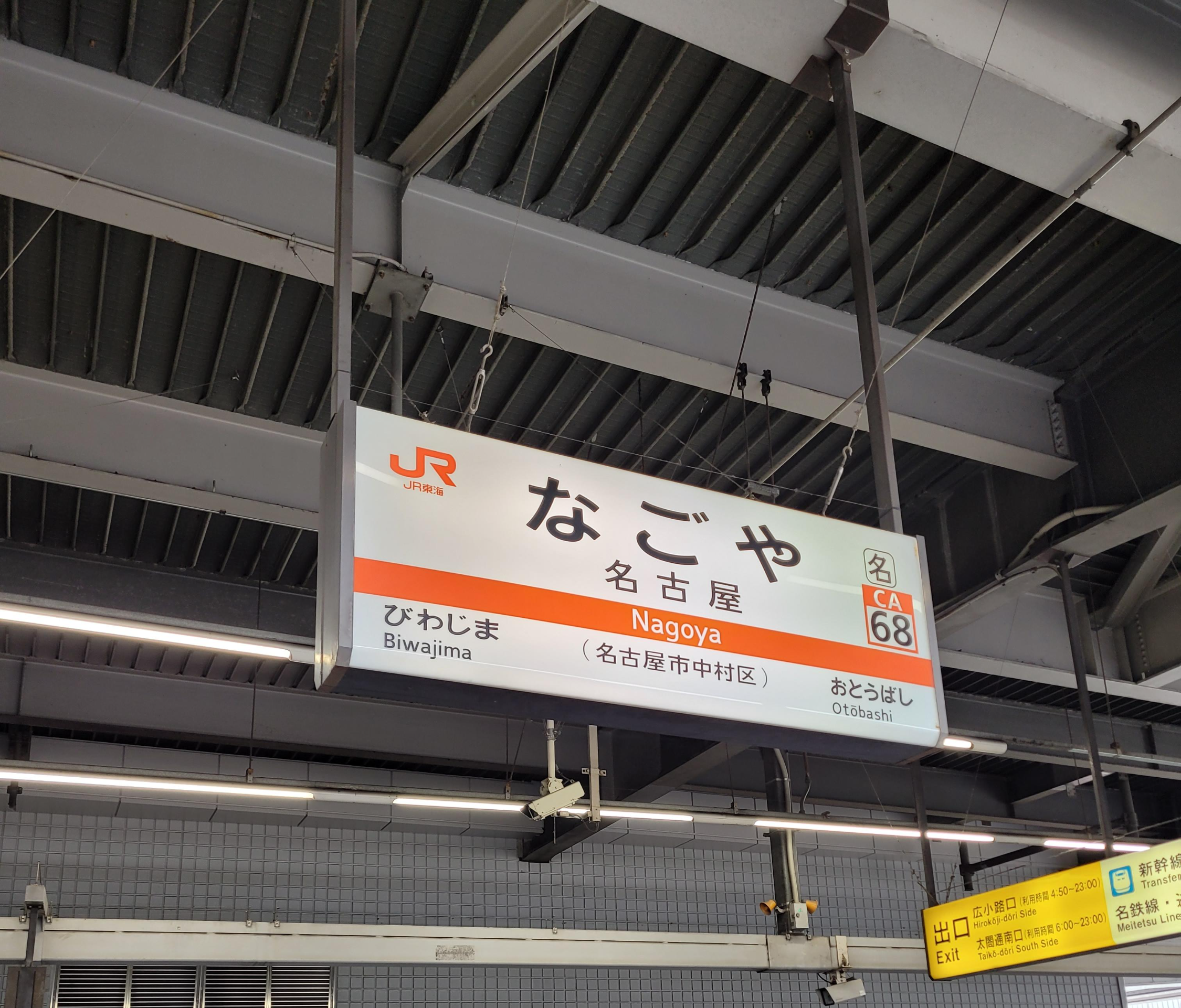 한국 지하철처럼 좌석이 창가에 붙어있는 열차였어요. 일본은 기관사, 차장칸이 투명해서 풍경 구경도 재미졌어요. 기후에서 도카이도 본선 신쾌속 열차로 환승했어요. 두 정거장만 지나면 나고야역 도착입니다!