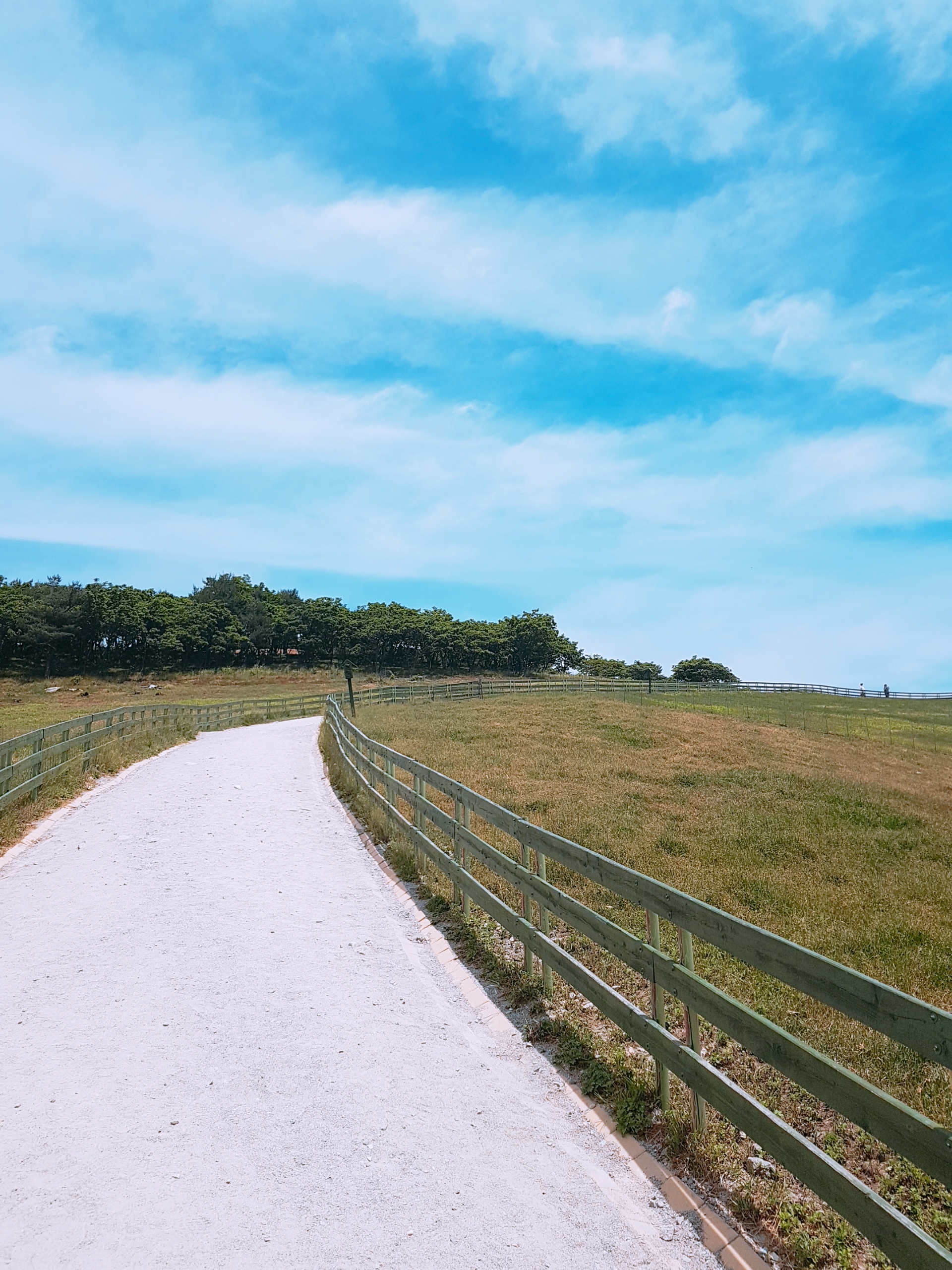 평일에 가서 그런지 목장이 참 여유로웠어요. 하늘도 정말 맑구요. 저희는 산책로 1코스로 이동했는데 바람이 시원하게 부는 지형이라 그런지 땀이 안 났어요. 산책로 2코스 초입은 해가 바로 비치는 곳이라 땀이 많이 났을 텐데 1코스로 돌길 잘했다는 생각이 들었습니다.