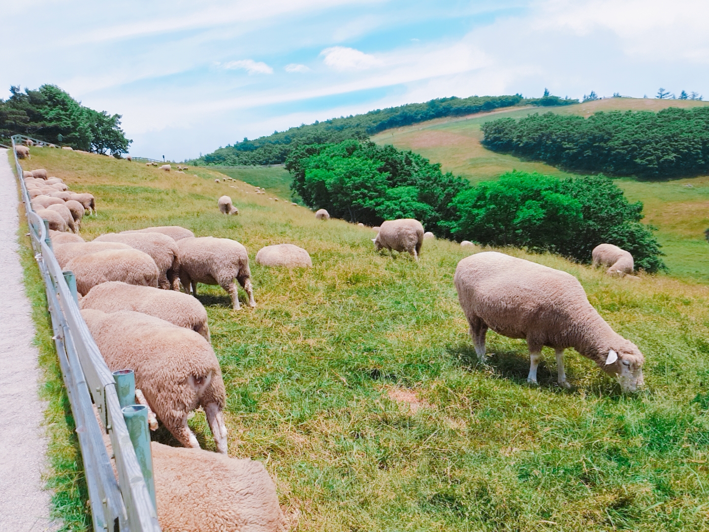 한 가지 에피소드가 있었어요. 전날 저는 대관령 삼양목장을 네이버 예약을 통해 미리 입장권을 예매했는데, 알고 보니 남자친구는 대관령 양떼목장 방향으로 운전하고 있던 걸 거의 도착하고 나서 깨달았어요. 초행길이라서 삼양목장 이용권은 취소하고 대관령 양떼목장으로 들어갔답니다. 양떼목장은 다른 목장들이 제공하는 셔틀버스 서비스는 없지만, 입장료가 상대적으로 저렴하고 잘 정돈된 목장이니 튼튼한 다리를 가진 성인, 아이라면 재밌게 즐길 수 있다고 생각합니다.