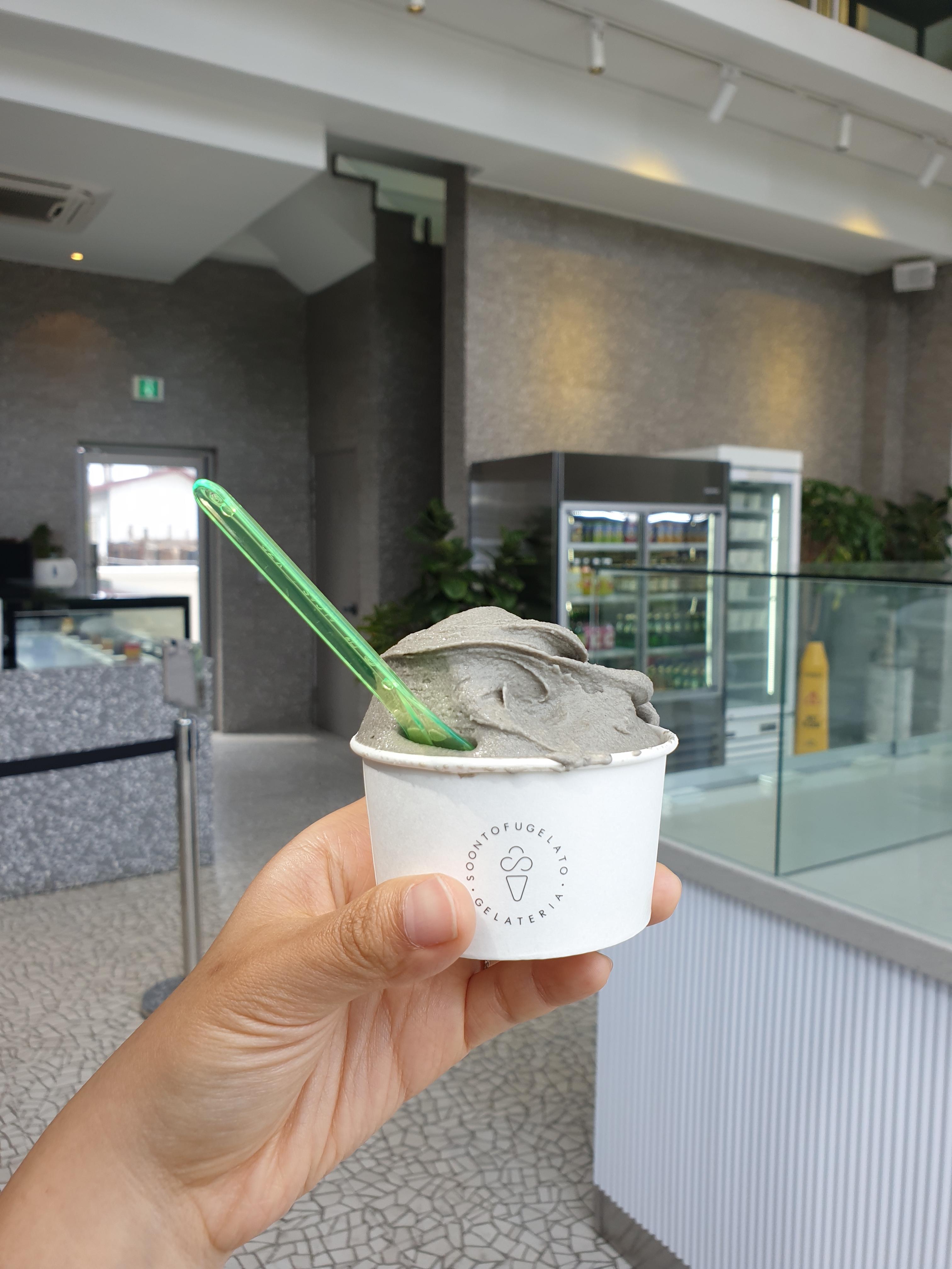 흑임자젤라또는 순두부젤라또보다 조금 더 단 맛이었어요. 옛날부터 흑임자를 좋아했어서 흑임자 떡이나 검은깨 경단 같은걸 좋아했었는데요. 흑임자 함량이 매우 높은 아이스크림 맛이라고 생각하시면 될 거예요. 두유 중에서도 검은깨 두유맛으로 비유하고 싶은데요. 검은깨 두유는 기본 두유보다는 단 맛이 더 강하잖아요. 그 맛으로 생각하시면 됩니다.