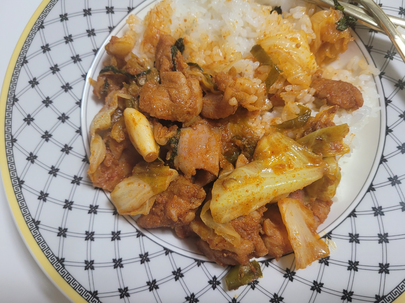 저는 집에 있는 양배추를 넣어 시판 닭갈비처럼 조리해보았습니다ㅎㅎ 마늘 닭갈비 이름 그대로 통마늘이 들어가있어요. 덮밥으로 먹는다면 2인분은 충분히 나오더라구요. 양념에 감칠맛이 있고, 간도 양배추를 넣어서 그런지 짜지 않고 적절했습니다